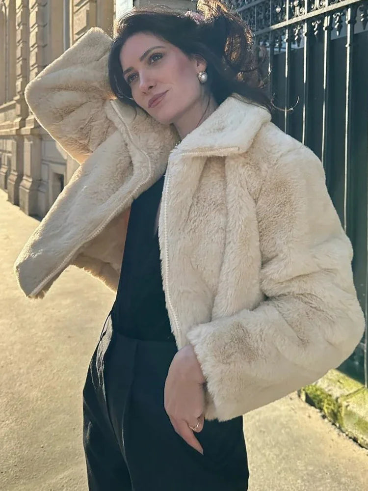 Fluffy Jackets Fall Clothes 2024 Women Casual Turn-down Collar Zipper Cardigan Warm Coat New in Outerwears C70-FD57