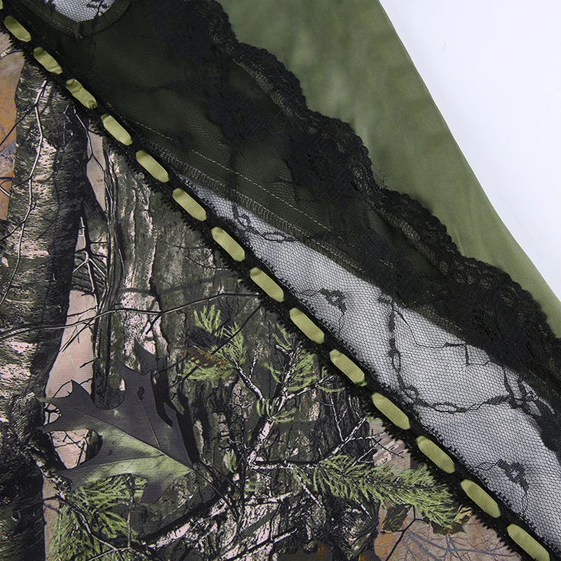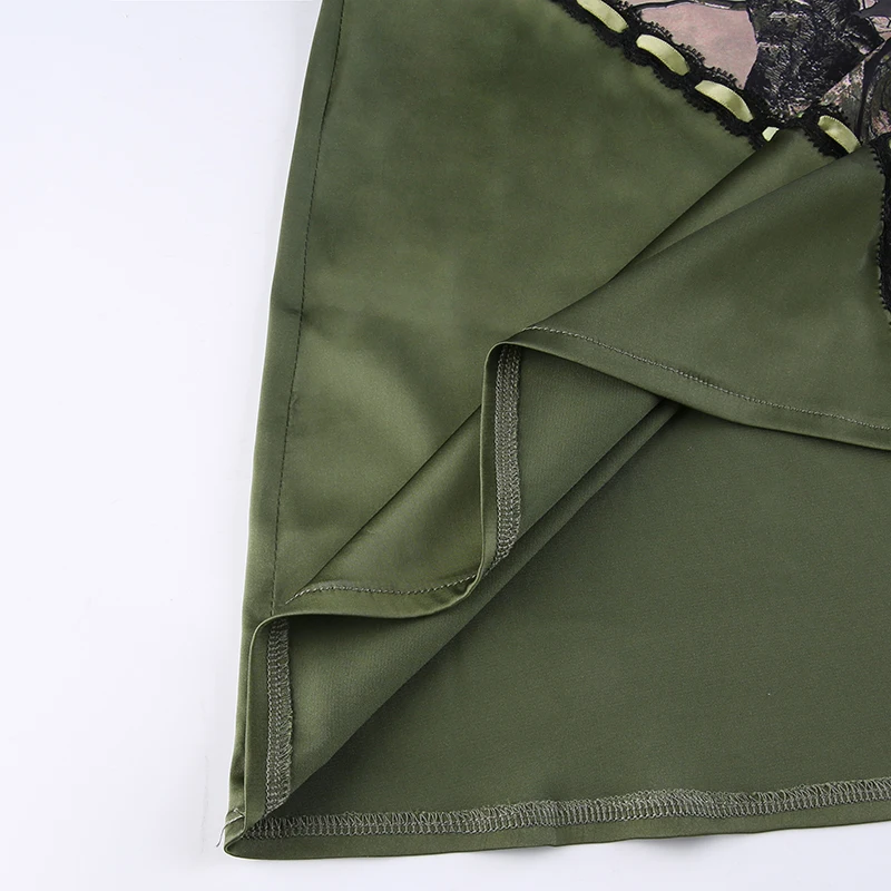 Forest Green Fairycore Plant Print Patchwork Lace Trim Slip Short Dress Women Summer Vacation Clothing