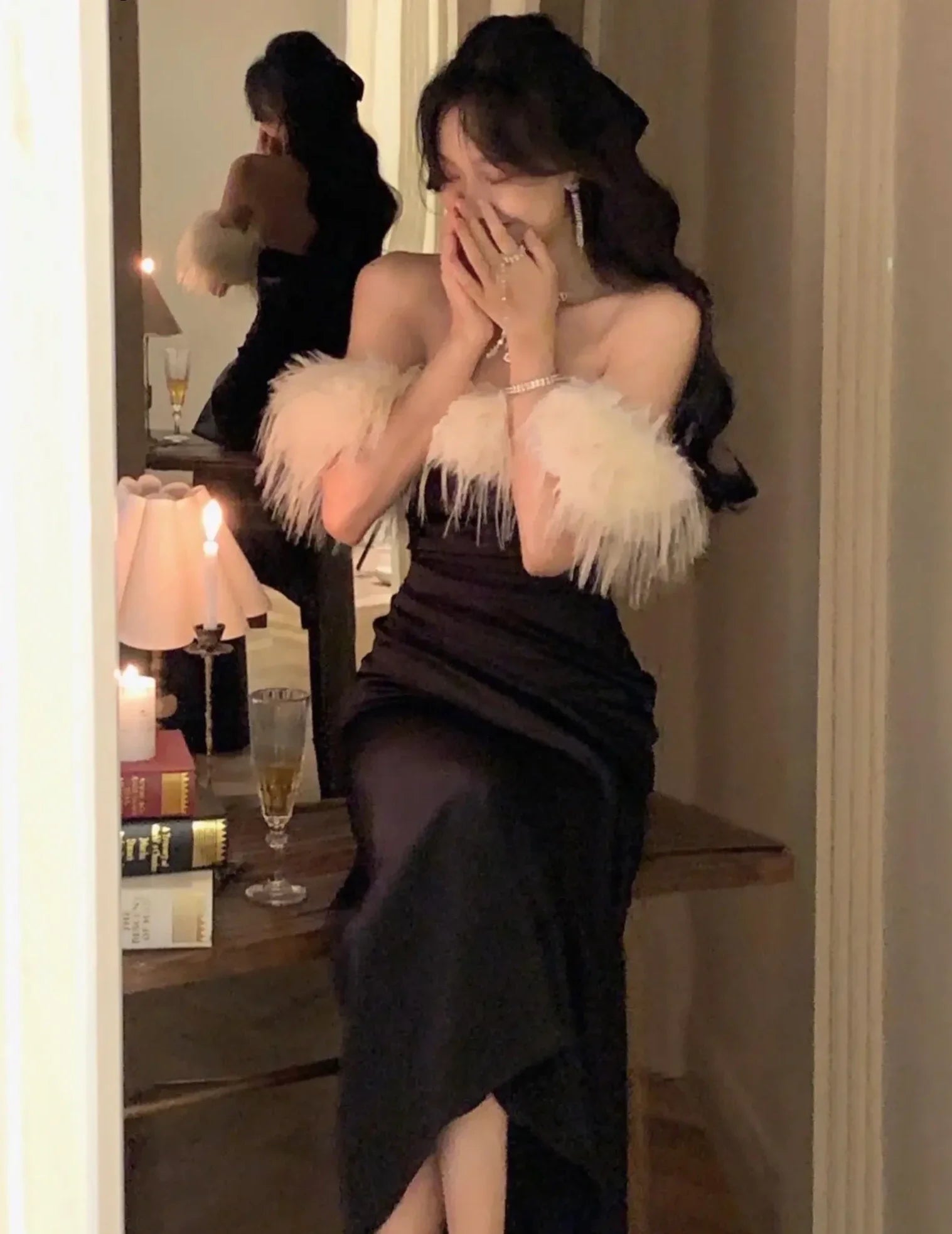 France Vintage Luxury Wedding Formal Occasion Dresses Women Autumn New Sexy Bodycon Bandage Party Robe Female Winter Clothes