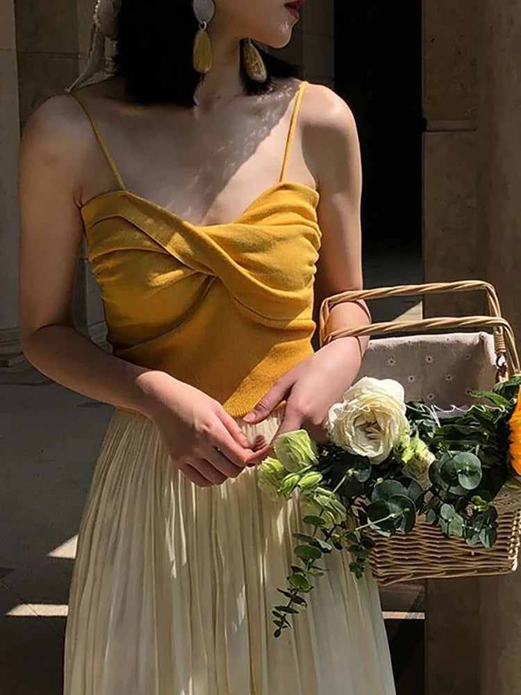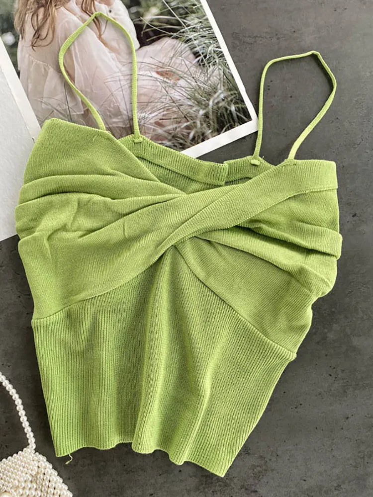 maoxiangshop-Heliar Women Pleated Strapy Camisoles Female Slim Crop Tops Knitted Sexy Tops For Women Cloth 2022 Summer