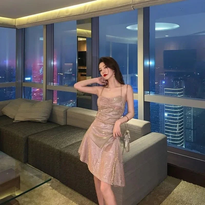 maoxiangshop-Sequin Bodycon Slip Dress Woman Sexy Backless Birthday Party Club Star Outfits for Women Summer Dress 2021 Off Shoulder