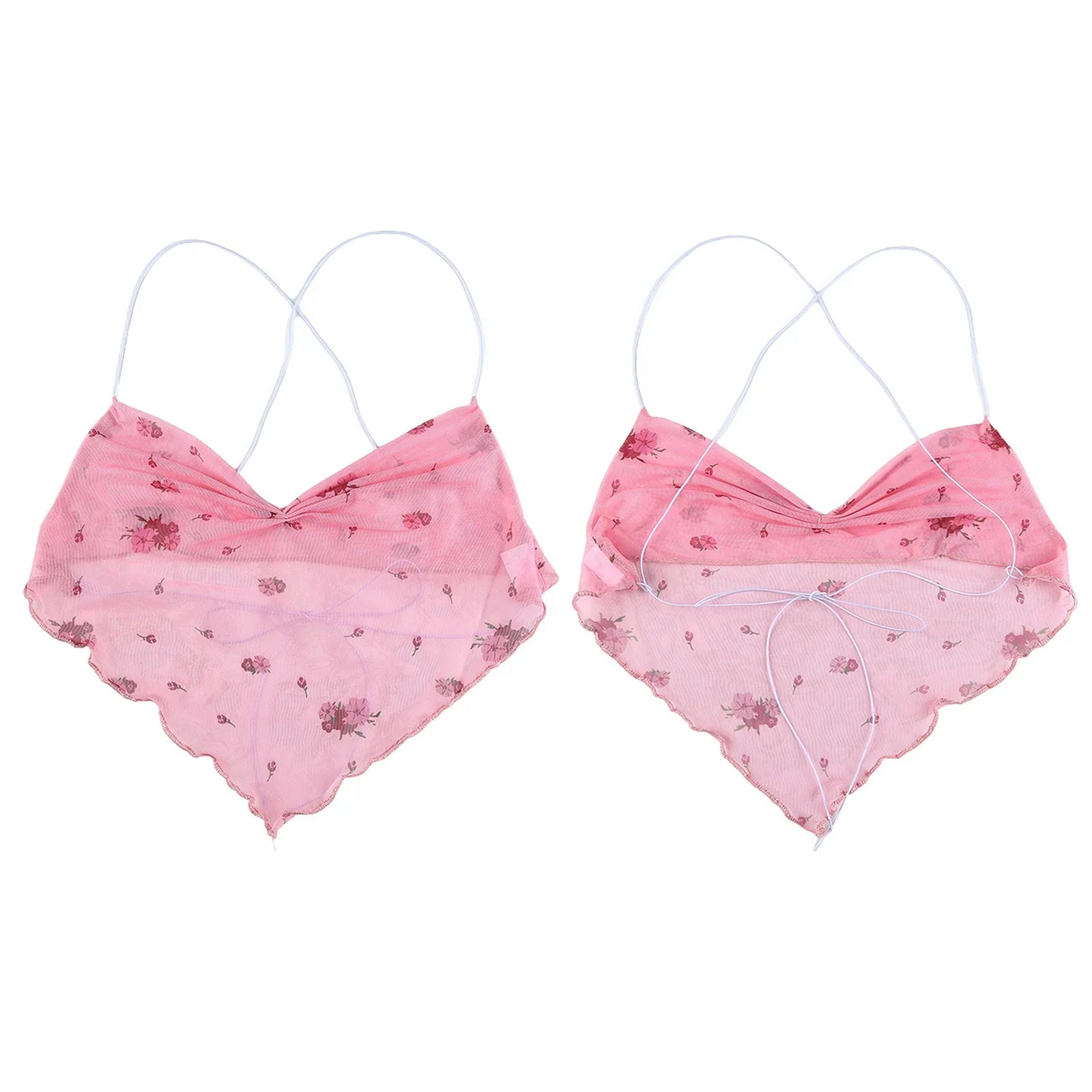 maoxiangshop-Summer Women's Sexy Sweet Floral Print Girly Style Camisole Sleeveless Backless Low Chest Short Tops for Y2K Clothes Women