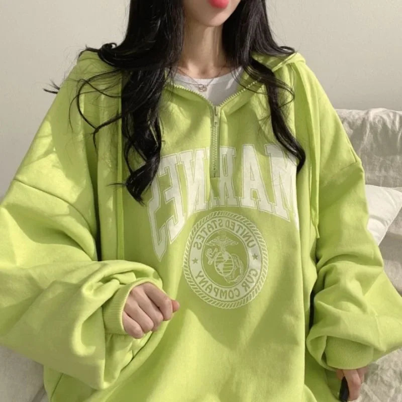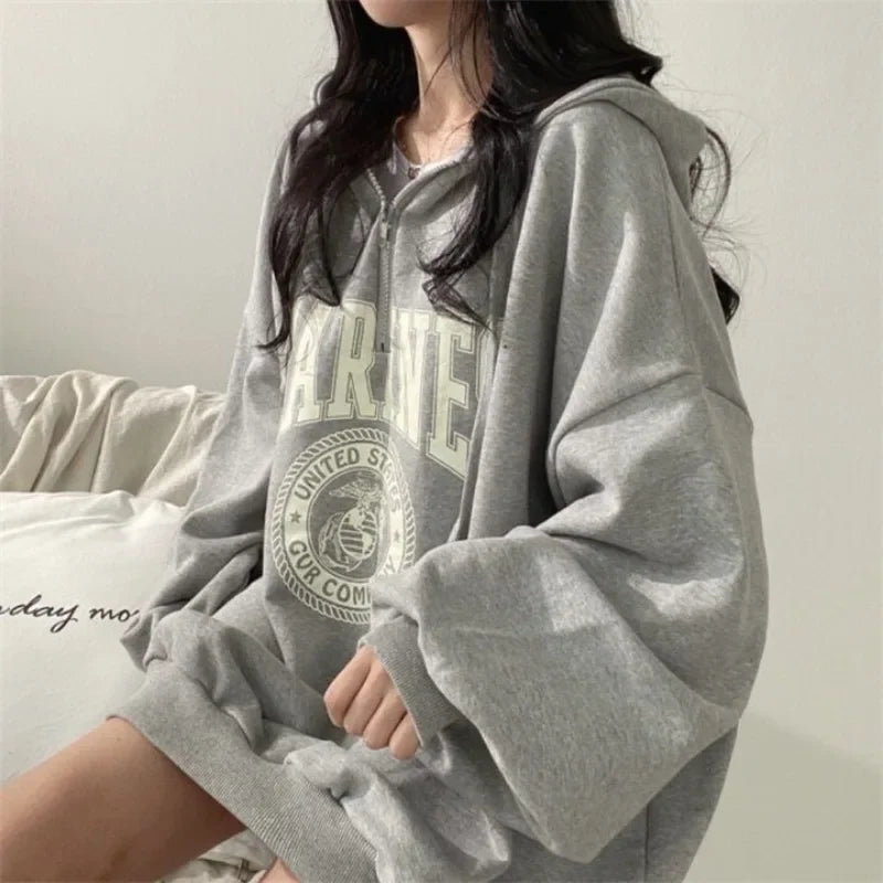 Graphic Hoodies Baggy Tops Grey with Zipper Sweatshirts for Women Full Zip Up Hooded Loose Female Clothes Pullovers Sport Trend
