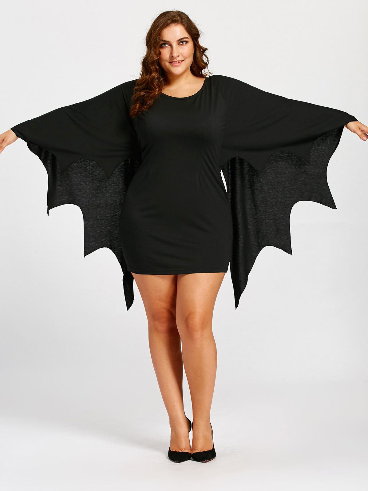 maoxiangshop Halloween new plus size women's bat shirt in a long dress women costume