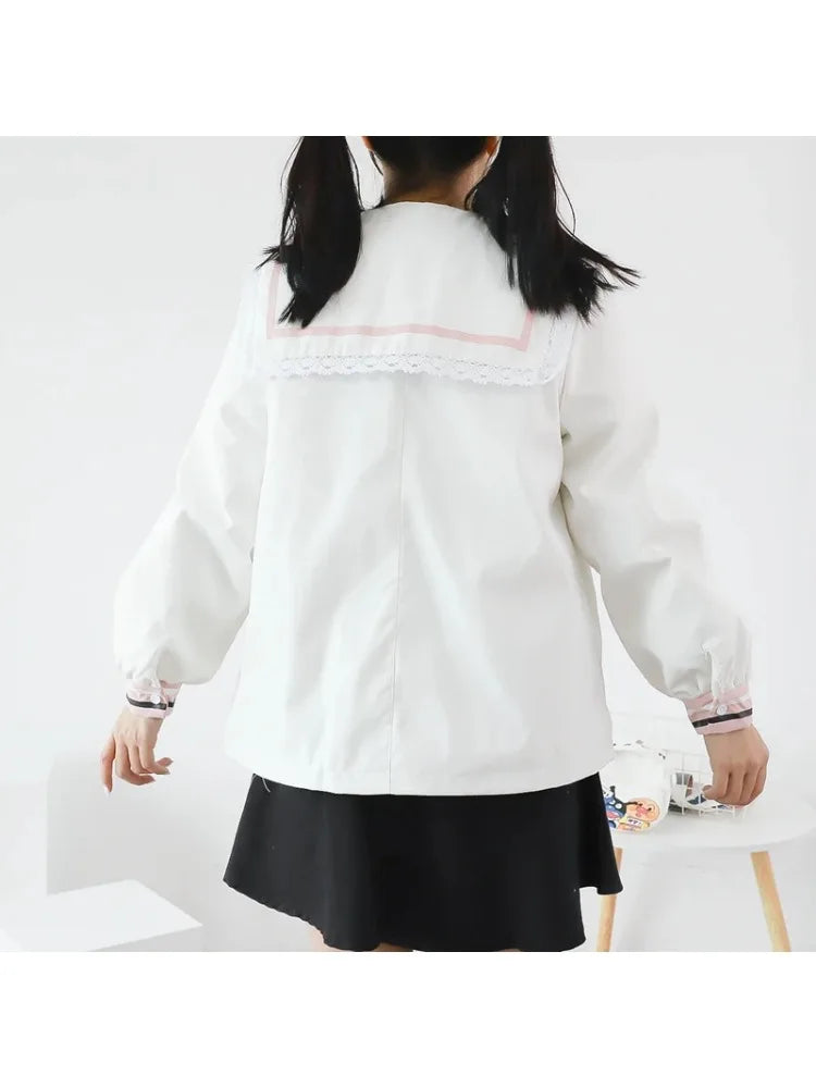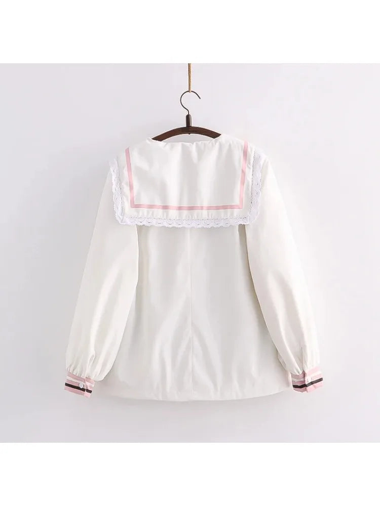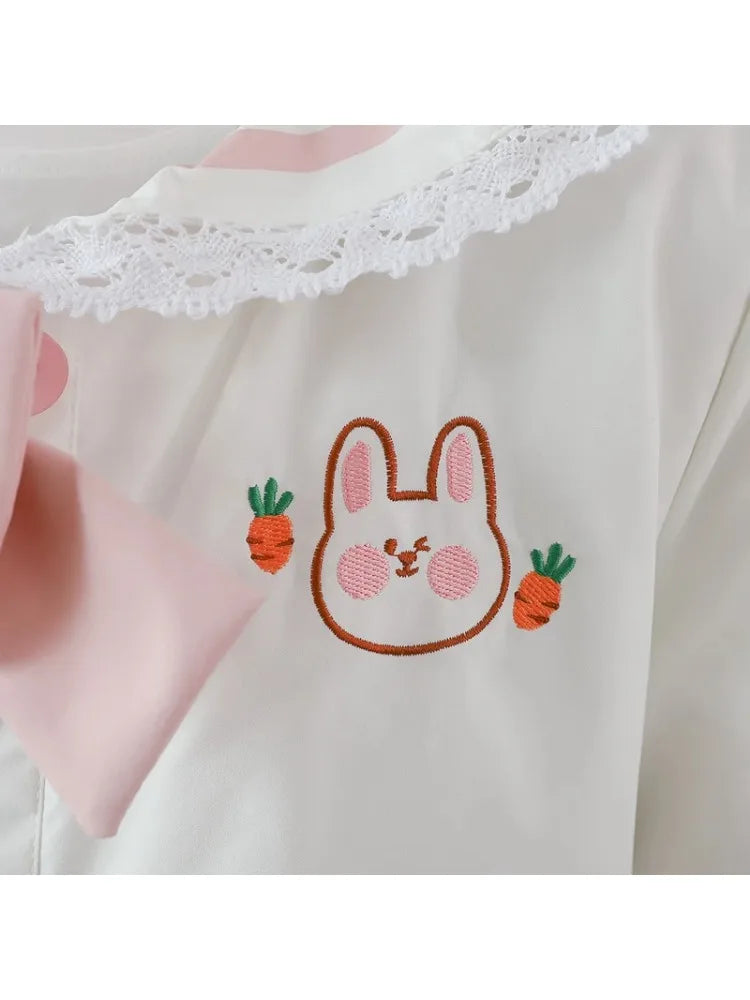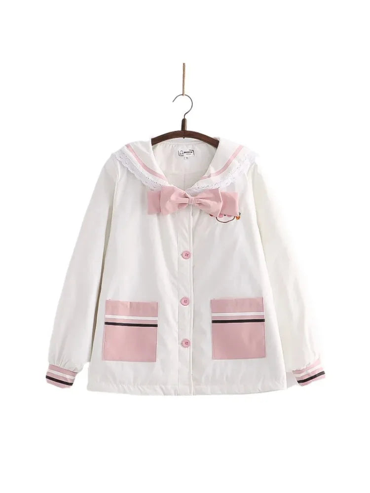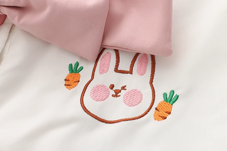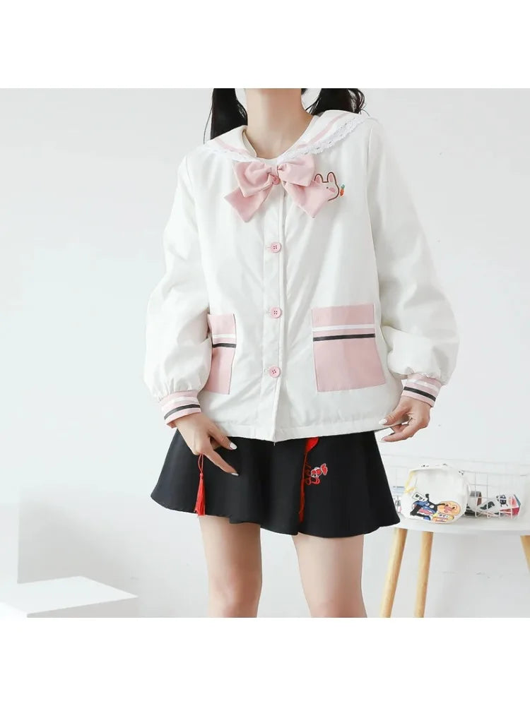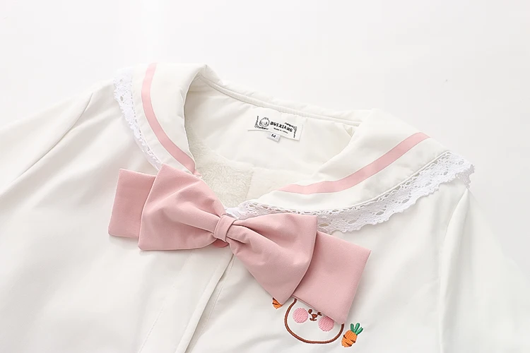 Harajuku Rabbit Embroidery Women Quilted Coats Winter Long Sleeve Sailor Collar Bow Ladies Cotton Liner Jackets Outwears
