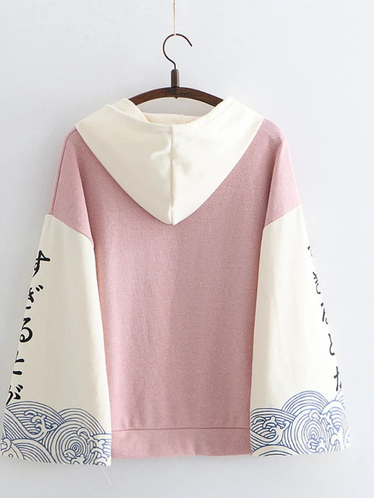 Harajuku Women Hooded Sweatshirts Autumn Long Sleeve Pullovers Tracksuits For Femme Japan Style Print Hoodies Girls