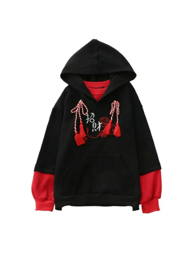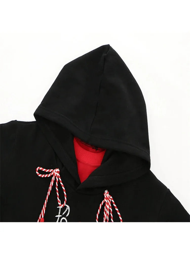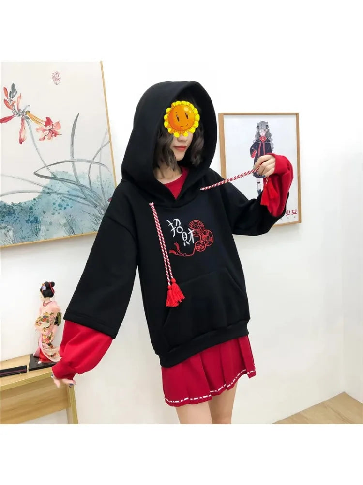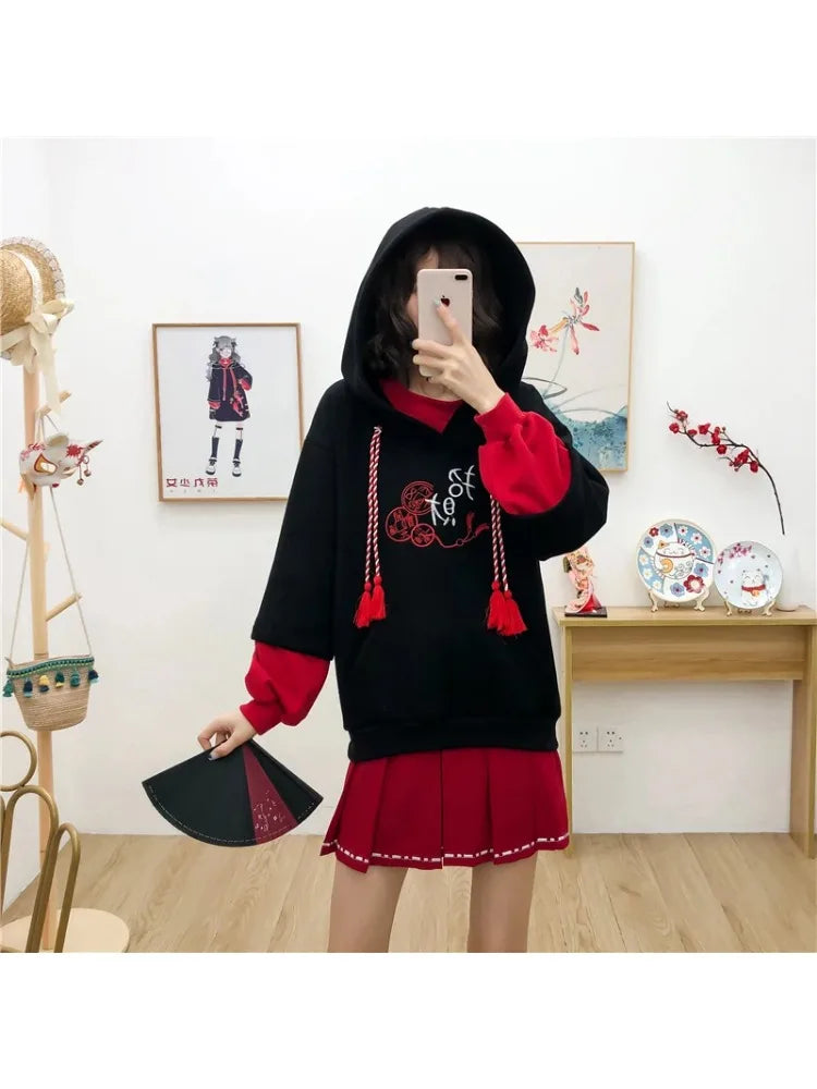Harakuju Letter Embroidery Hoodies Winter Fleece Thick Long Sleeve Hooded Sweatshirts Sweet Style Pullover Tracksuits
