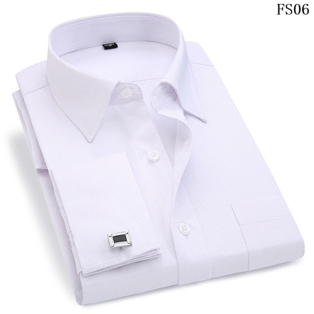 High Quality Striped For Men French Cufflinks Casual Dress Shirts Long Sleeved White Collar Design Wedding Tuxedo Shirt 6XL