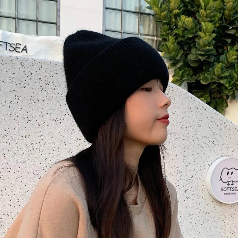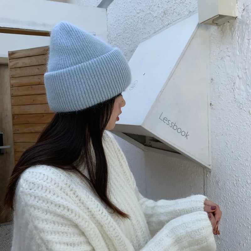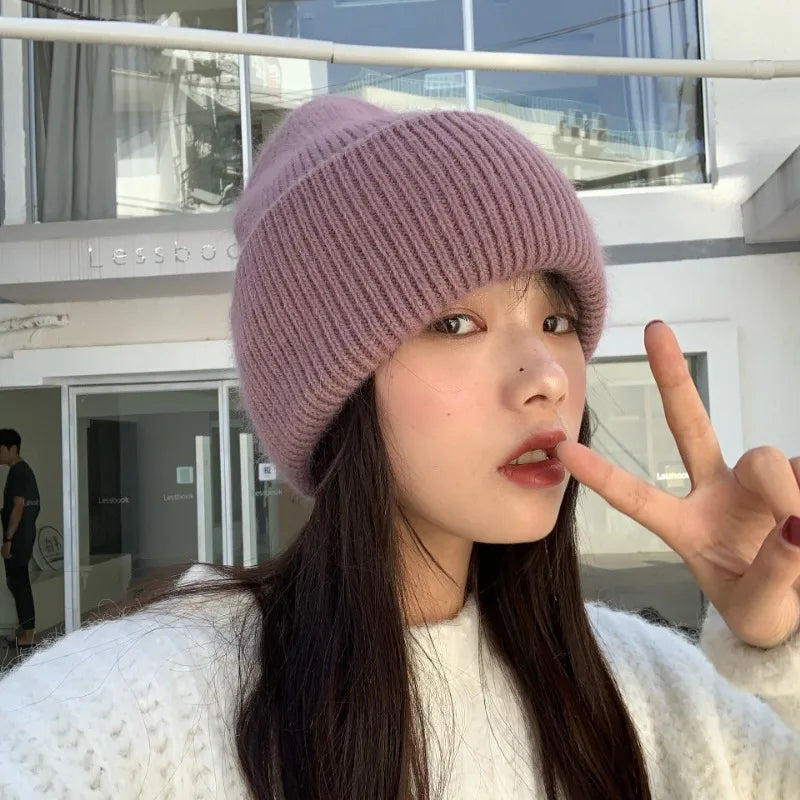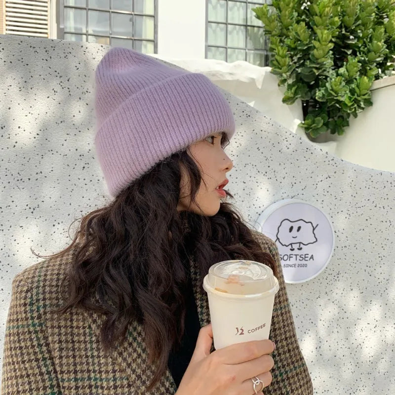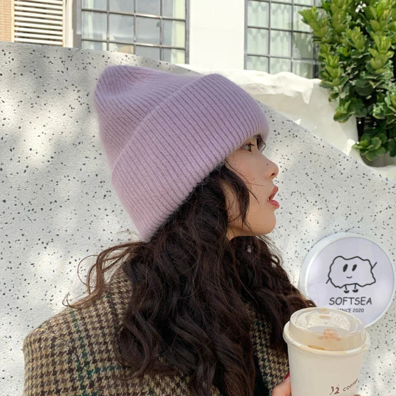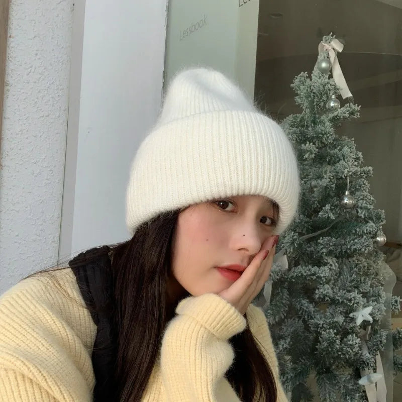 maoxiangshop High Quality Thickened Knitted Beanies Hat Women Men Skiing Gorras Winter Rabbit hair Warm Wool Caps Ear Windproof Cycling Hats