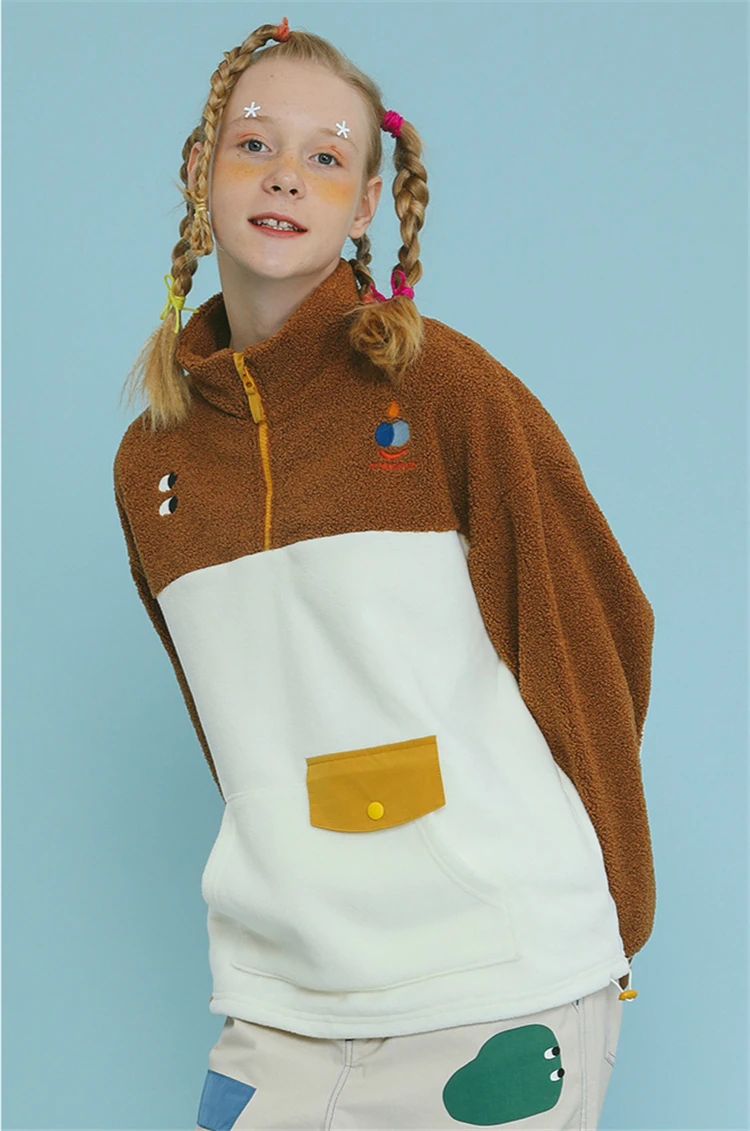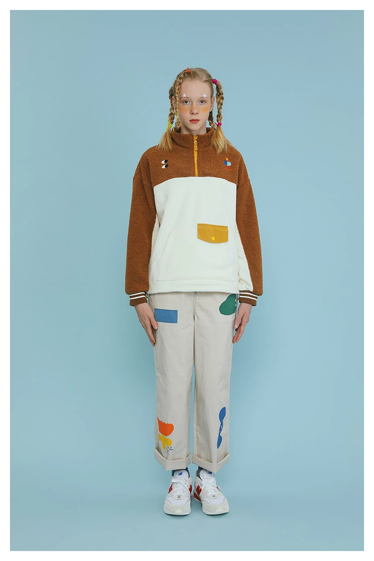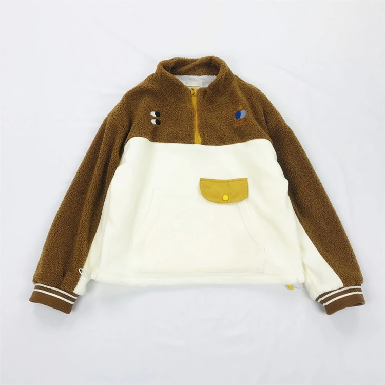 High Quality Women Embroidery Fleece Hoodies Sweatshirts Winter Long Sleeve Standing Collar Pullover Loose Tracksuit