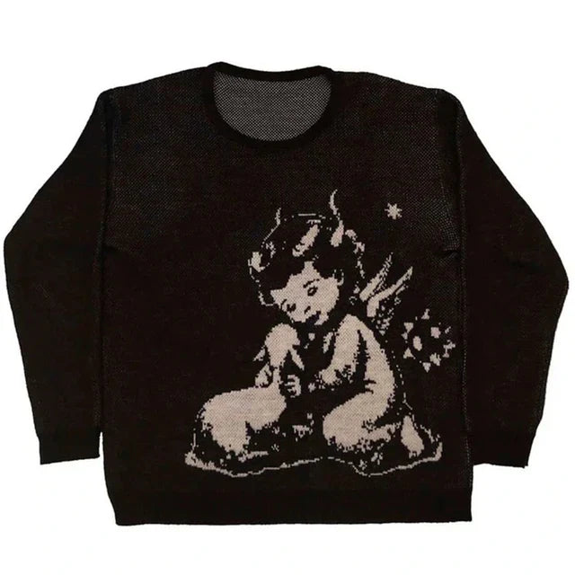 Hip Hop Knitted Men's Women's Sweater 2022 Harajuku Fashion Spider Boy Pattern Printing Loose Tops Casual Streetwear Pullover
