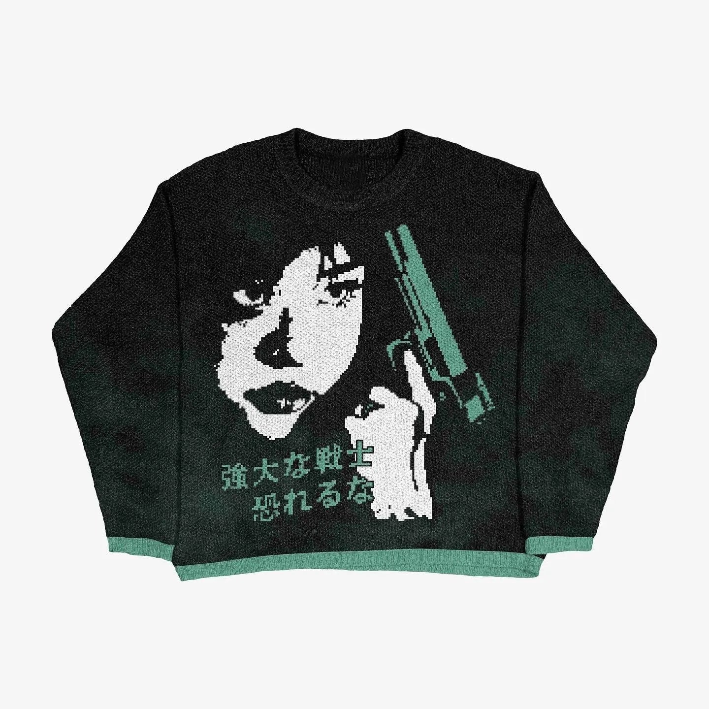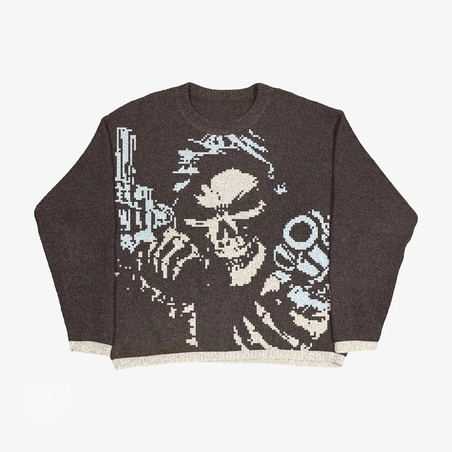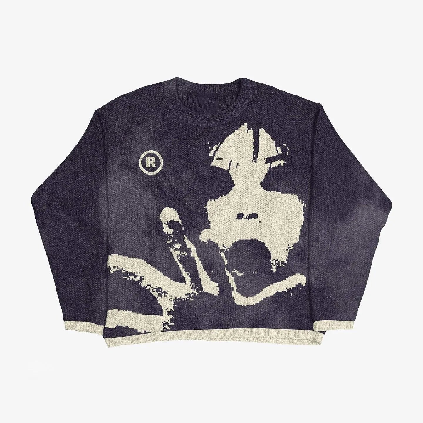 Hip Hop Knitted Men's Women's Sweater 2023 Harajuku Fashion Spider Boy Pattern Printing Loose Tops Casual Streetwear Pullover