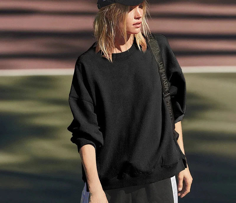 Hoodies Sweatshirts Basic Solid Color Cozy Round Neck Pullovers Long Sleeve Top Fall Winter Clothes Woman P67-CI51