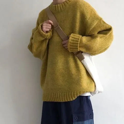 HOUZHOU Solid Oversized Sweater Women Korean Fashion Autumn Winter Gray Knitted Jumper Female Harajuku Blue Pullover Tops