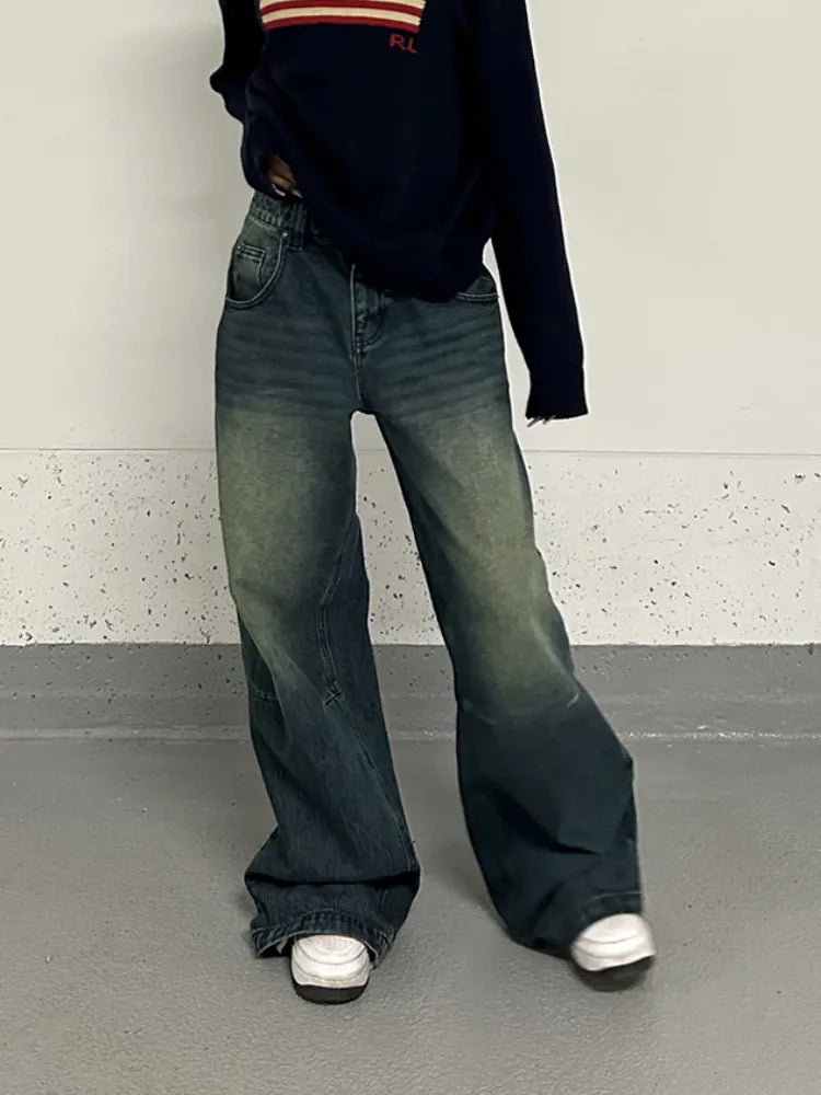 HOUZHOU Vintage Baggy Jeans Wide Women Grunge Oversized American Retro High Waist Denim Trousers Female Streetwear Cowboy Pants
