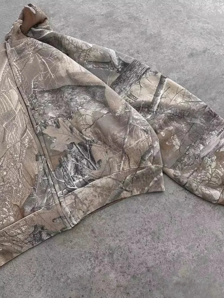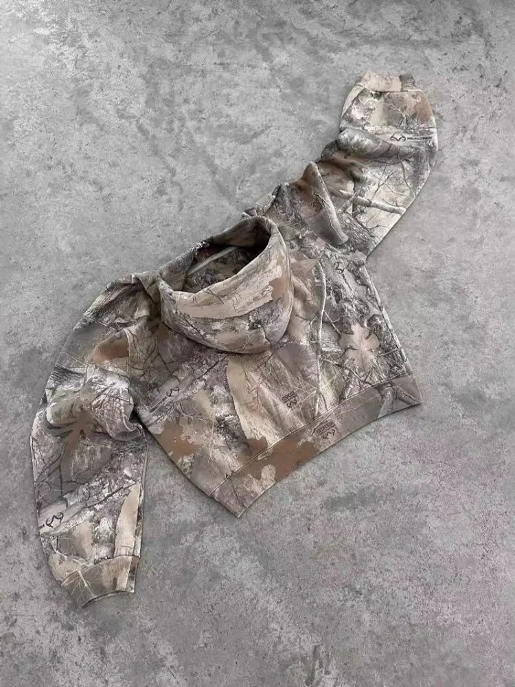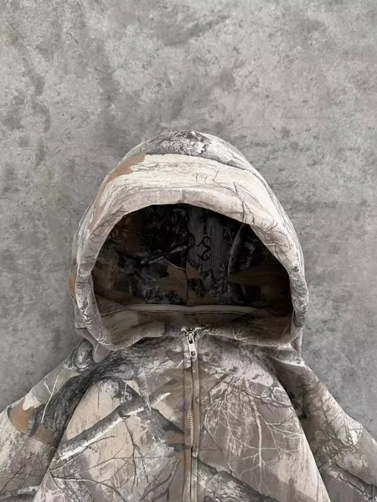 maoxiangshop Y2k Aesthetic Streetwear Hoodies Women American Retro Camo Print Grunge Punk Hip Hop Zipper Hooded Sweatshirt Chic