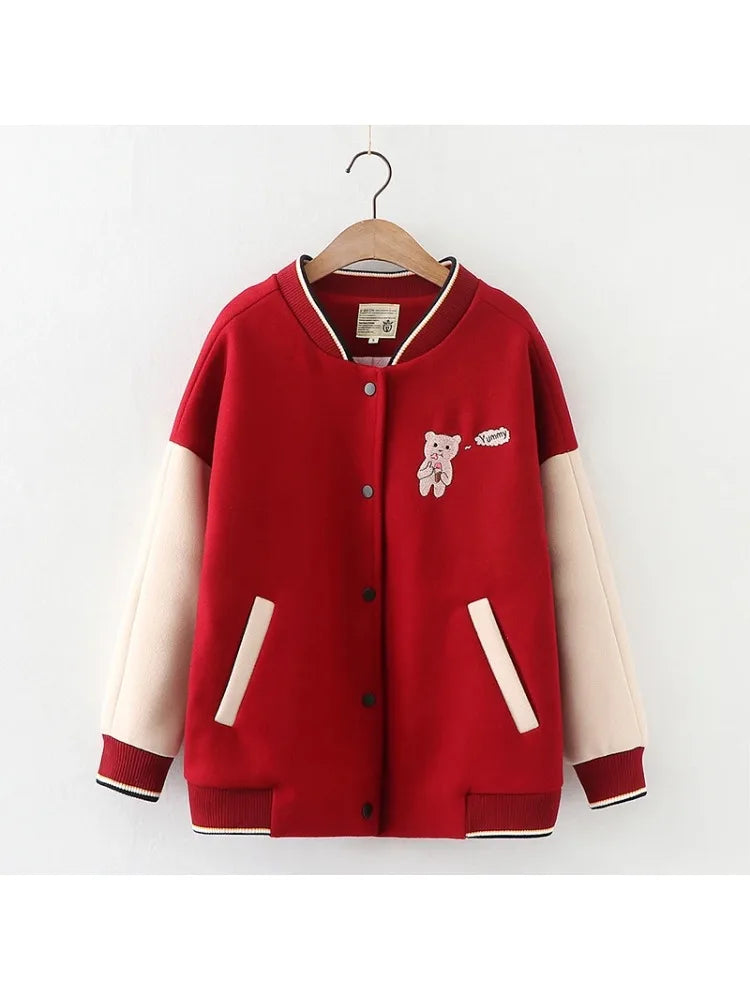 Jackets Women Winter Cartoon Embroidered Hooded Bomber Streetwear Casual Loose Long Sleeve Coat Mujer
