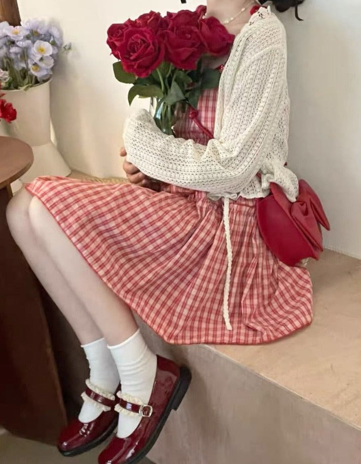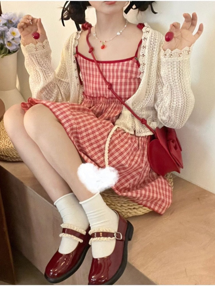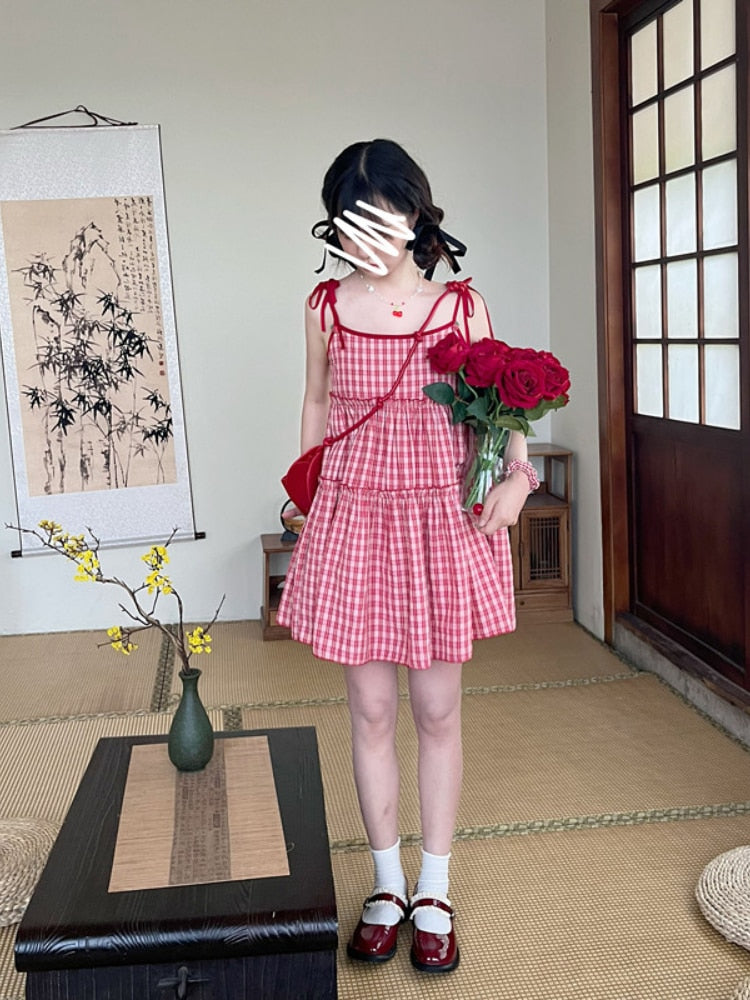 maoxiangshop Japanese Kawaii Lolita Dress Women Sweet Red Plaid Party Mini Dress Female Korean Fashion Loose Y2k Princess Dress New In Autumn