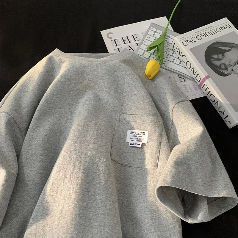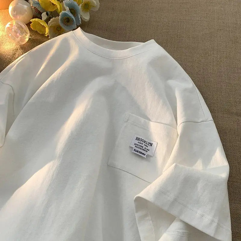 Japanese Label Design Short-sleeved T-shirt for Men in Summer Trendy Brand Casual Loose Korean Style Simple Pocket Niche T-shirt