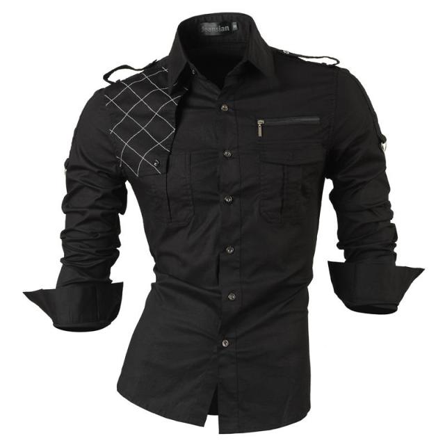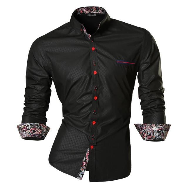 Jeansian Men's Dress Shirts Casual Stylish Long Sleeve Designer Button Down Slim Fit 8397 WineRed