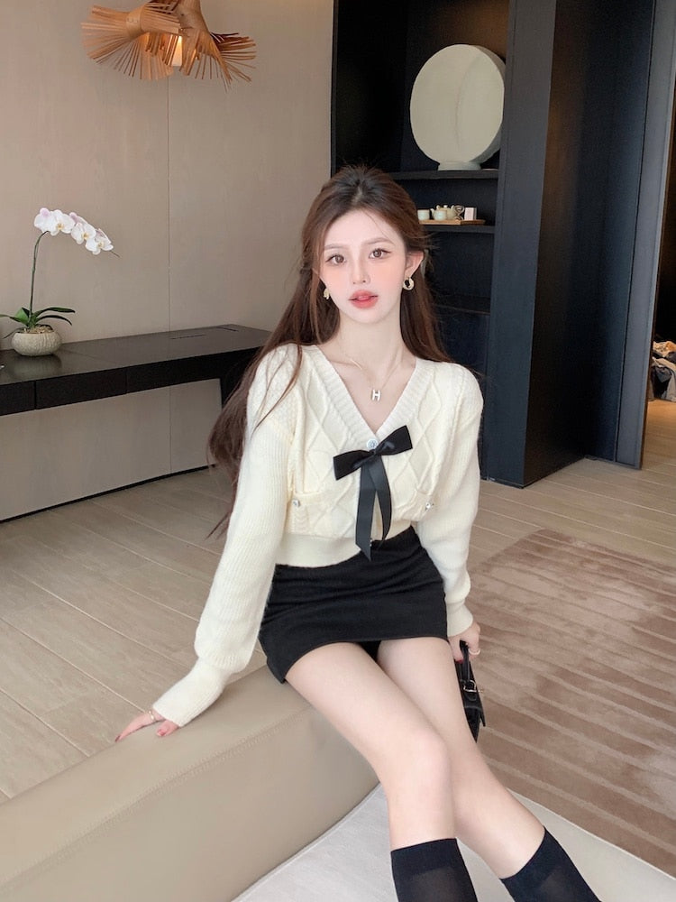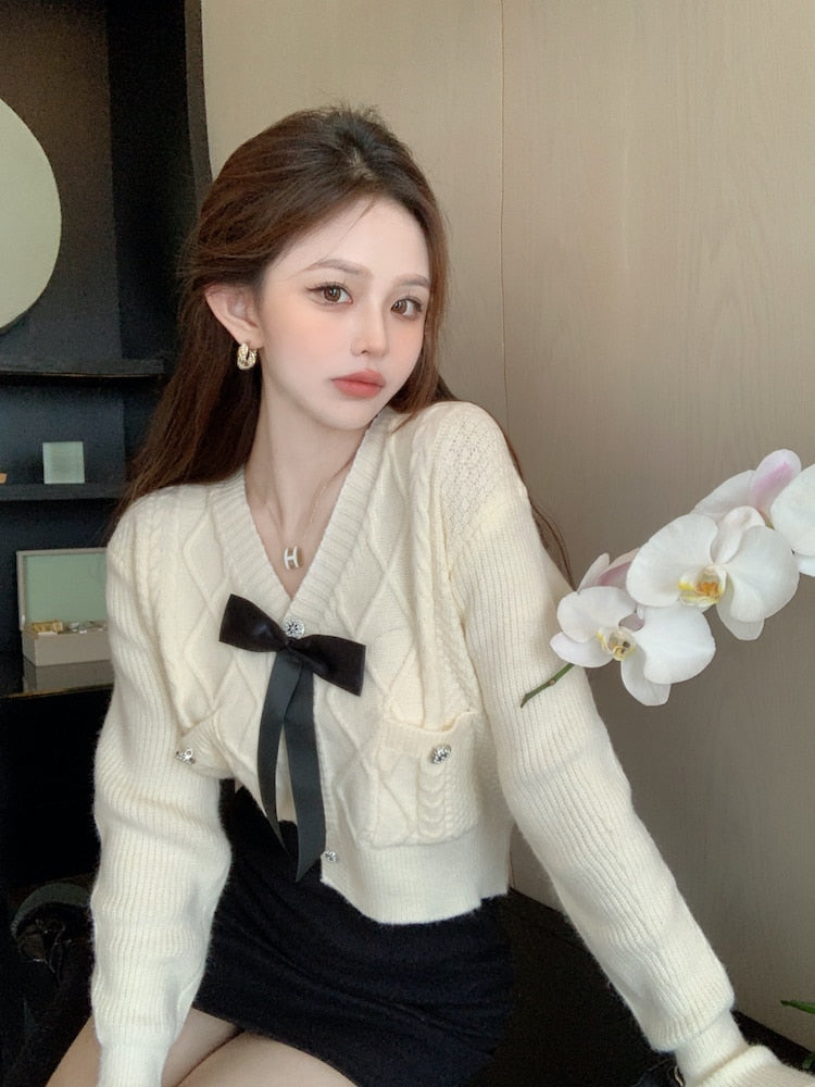 Knit Sweater Women's Cardigan Autumn Winter Vintage Long-Sleeved White Outer Wear Korean Style V-Neck Y2K Top Kawaii Sweater