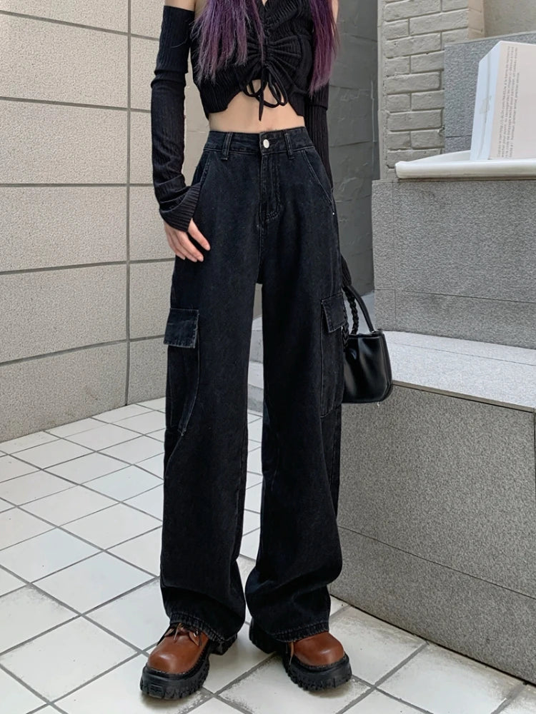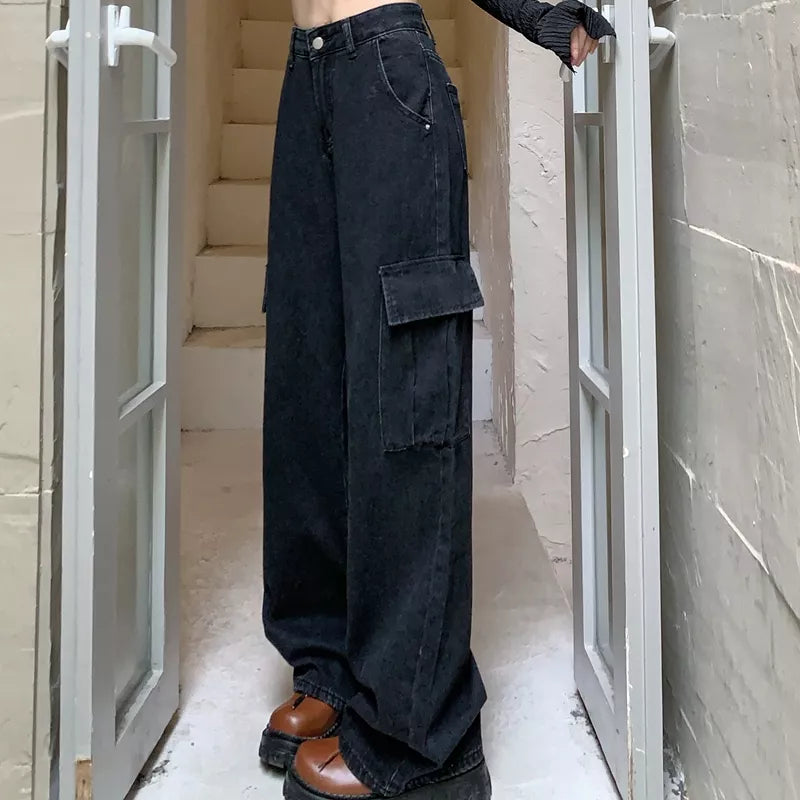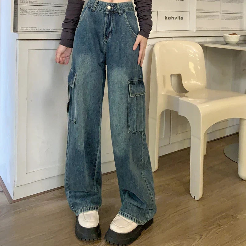 Korean Fashion Baggy Pants Women 2022 Summer Vintage High Waist Jeans Casual Straight Wide Leg Denim Trousers Lady Outdoor Slim