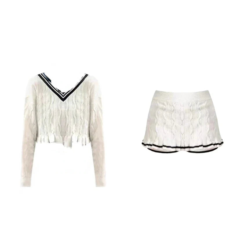 Gtadme Korean Fashion Y2k 2 Piece Set Woman Casual Knitting Sweater Tops + Slim Bodycon Mini Skirts Elegant Solid Suit Office Lady Chic