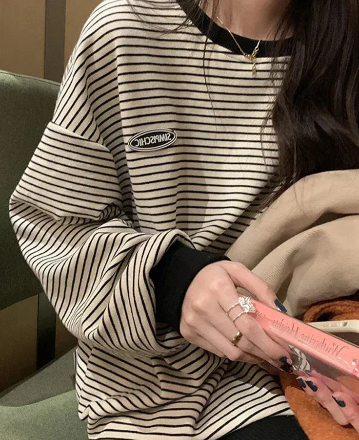 Korean Stripe Women's T-shirt Cotton Longs Leeve T Shirts for Women 2023 Spring Cheaper Basic Oversized Shirt Tops Sweatshirts