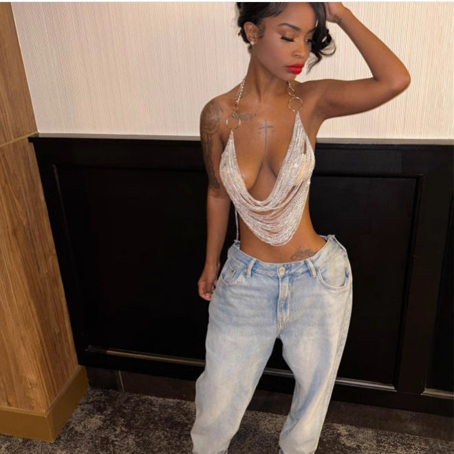L4842Y New new metal chain chest chain multi-layer fringed chain fashionable splicing neck top chest chain body chain