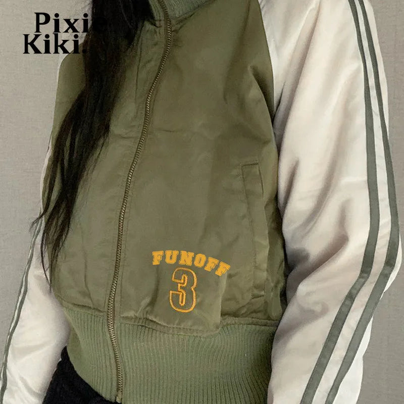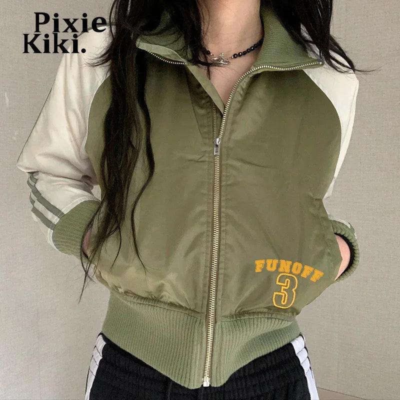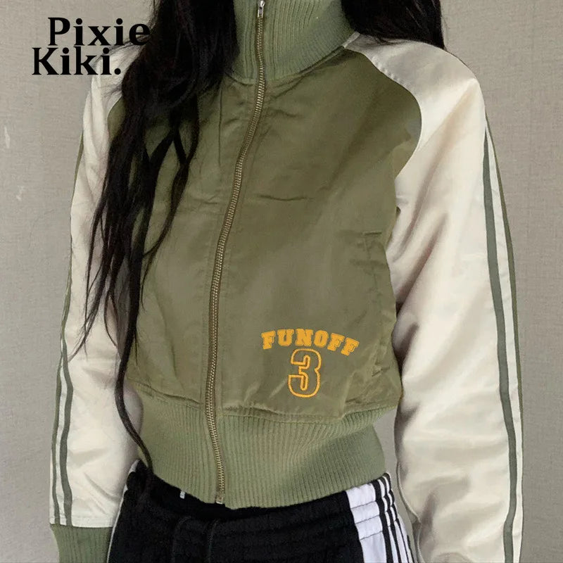 Letter Printed Turtleneck Zip Up Jacket Y2k 2000s Autumn Winter Clothes Women 2024 New in Outwears P84-ED45