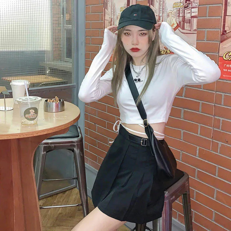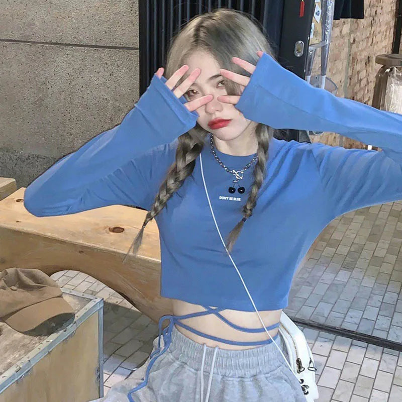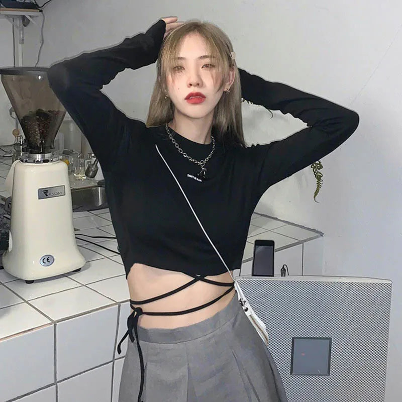 Long Sleeve T-shirts Women Design Sexy Crop Ins Prevalent Bandage Tops Harajuku Ulzzang Street Spring Female Ropa Hot Skinny New