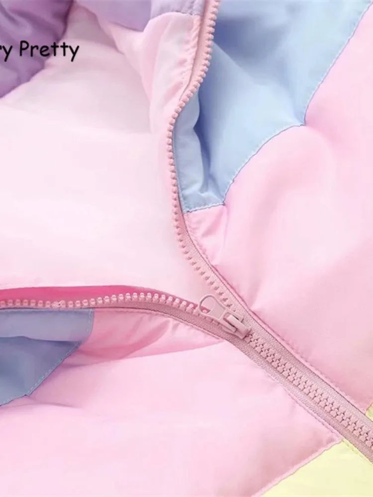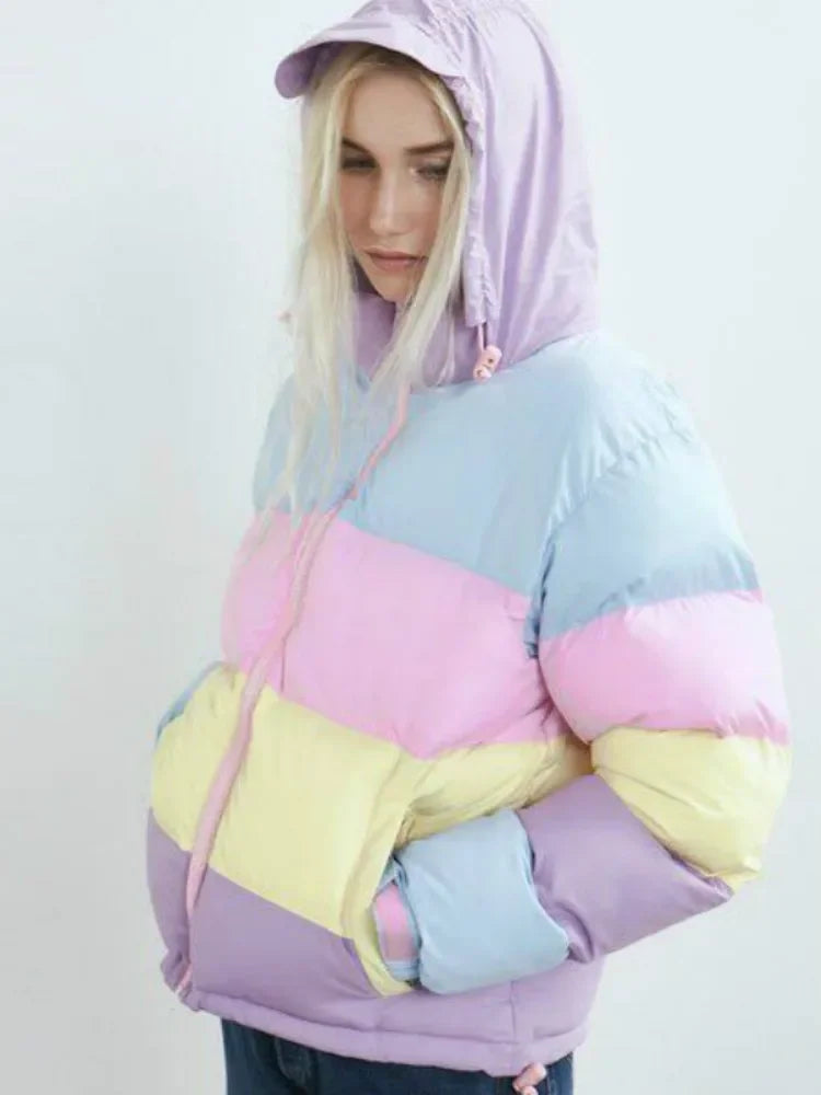 Makaron Color Women Cotton Coats Hooded Padded Thicken Warm Winter Jacket Patchwork Outwear Mujers Parkas
