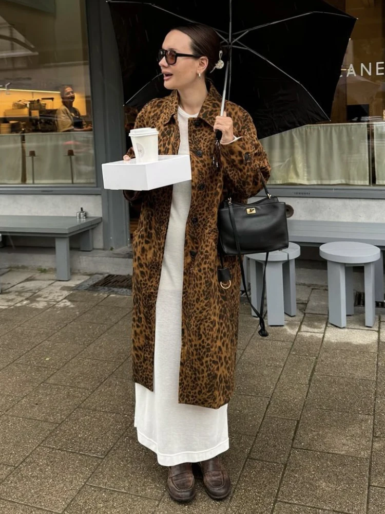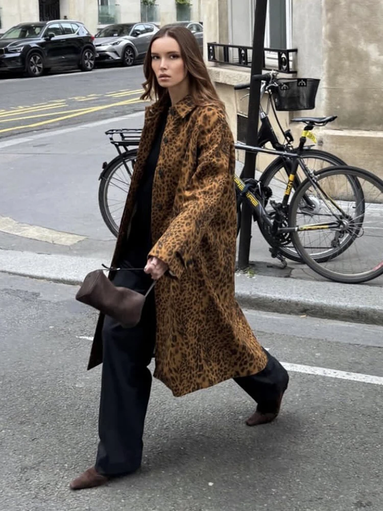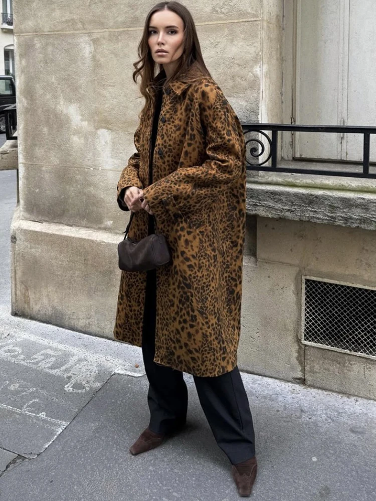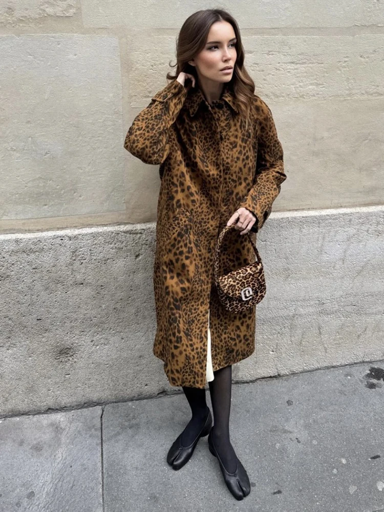 maoxiangshop - 2024 Autumn Leopard Print Women Oversize Trench Long Sleeve Single Breasted Long Loose Jacket Female Y2K Coat Streetwear