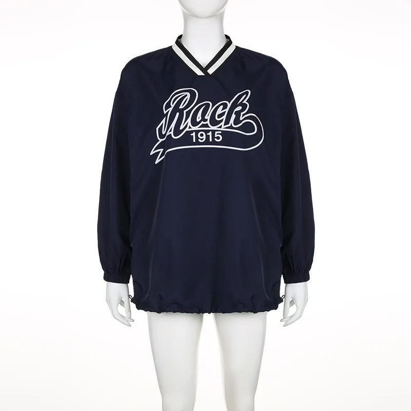 maoxiangshop - 2024 Autumn Letter Print Loose Casual Oversized Sweatshirts V-neck Long Sleeve Drawstring Casual Tops Harajuku Streetwear Outfit