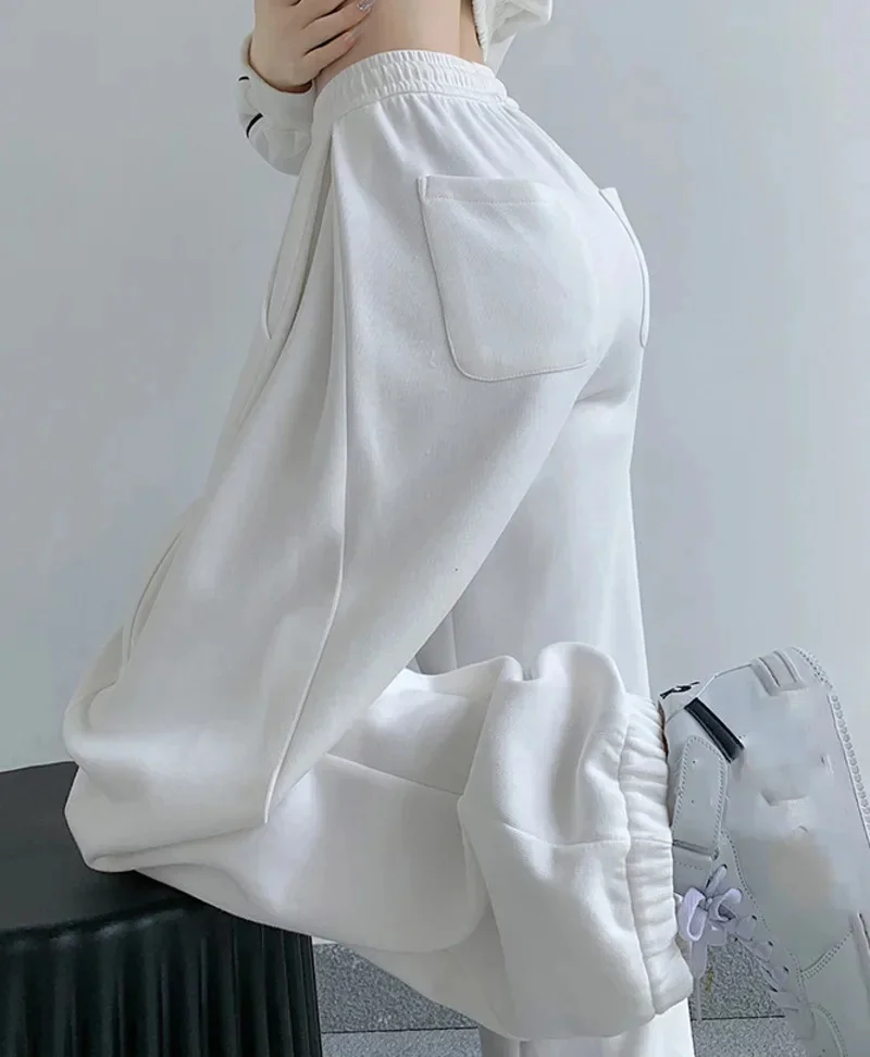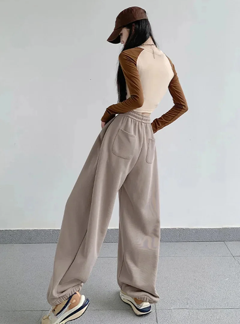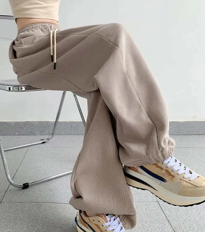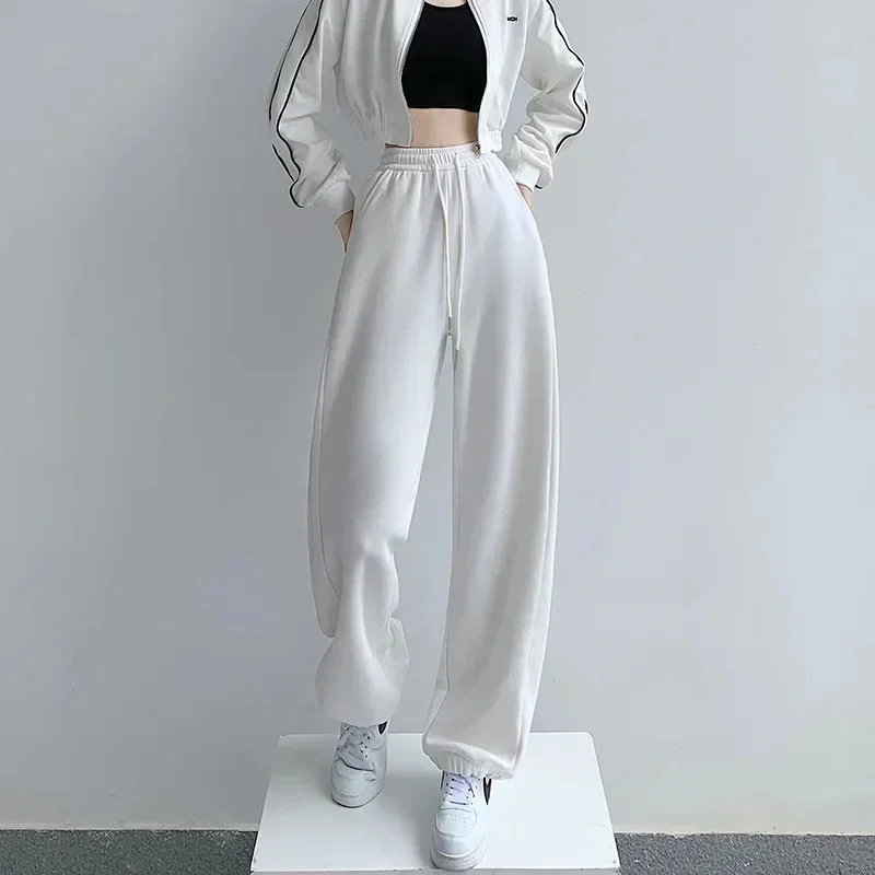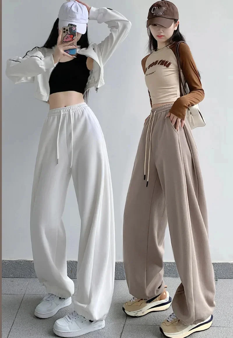 maoxiangshop - 2024 Autumn New Wide Leg Pants Women Baggy Sweatpants Loose High Waisted Bound Feet Pants Lady Lace Up Casual Straight Trousers