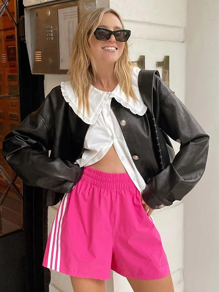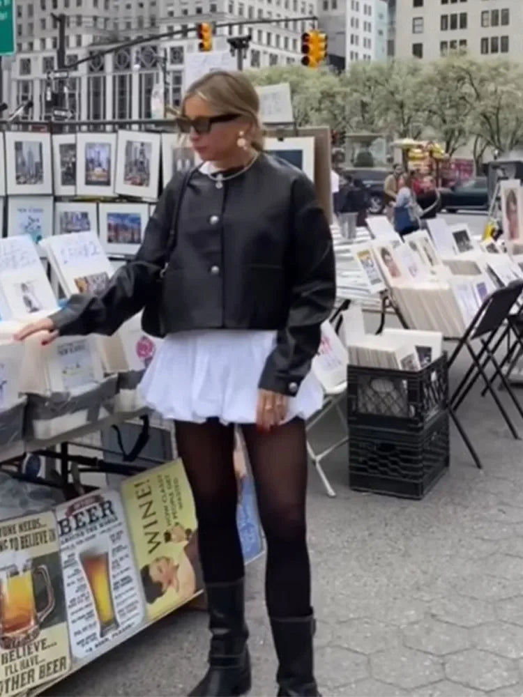maoxiangshop - 2024 New Autumn Single-breasted Leather Jackets For Women Fashion Round Neck Cropped Coats Female High Street Outerwear Jacket