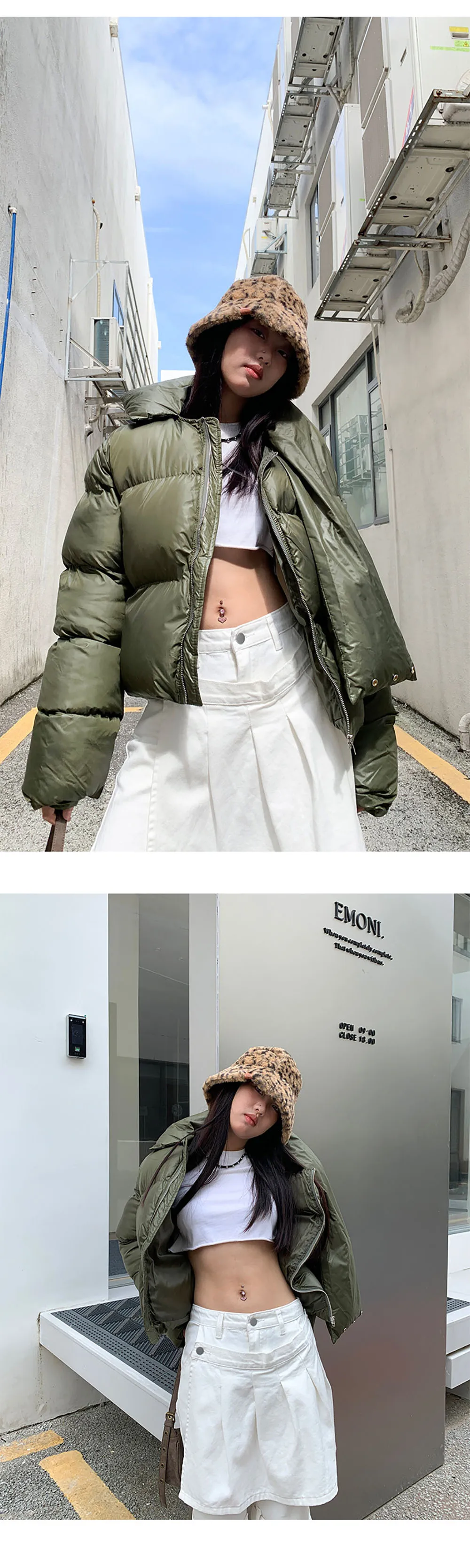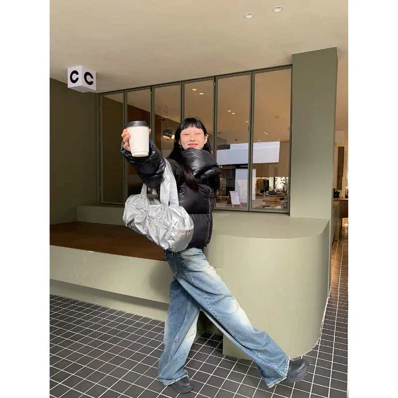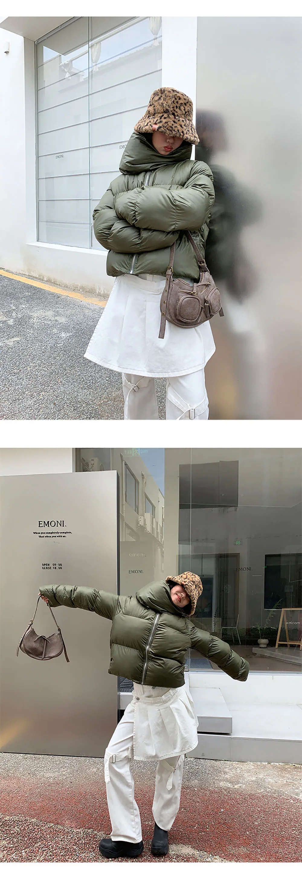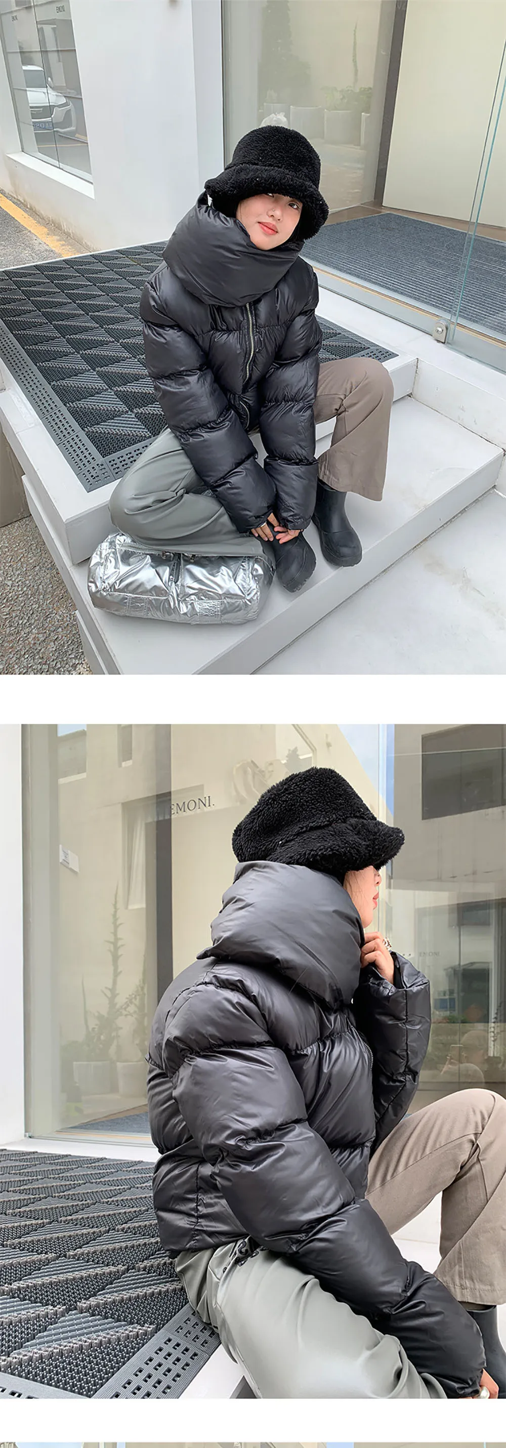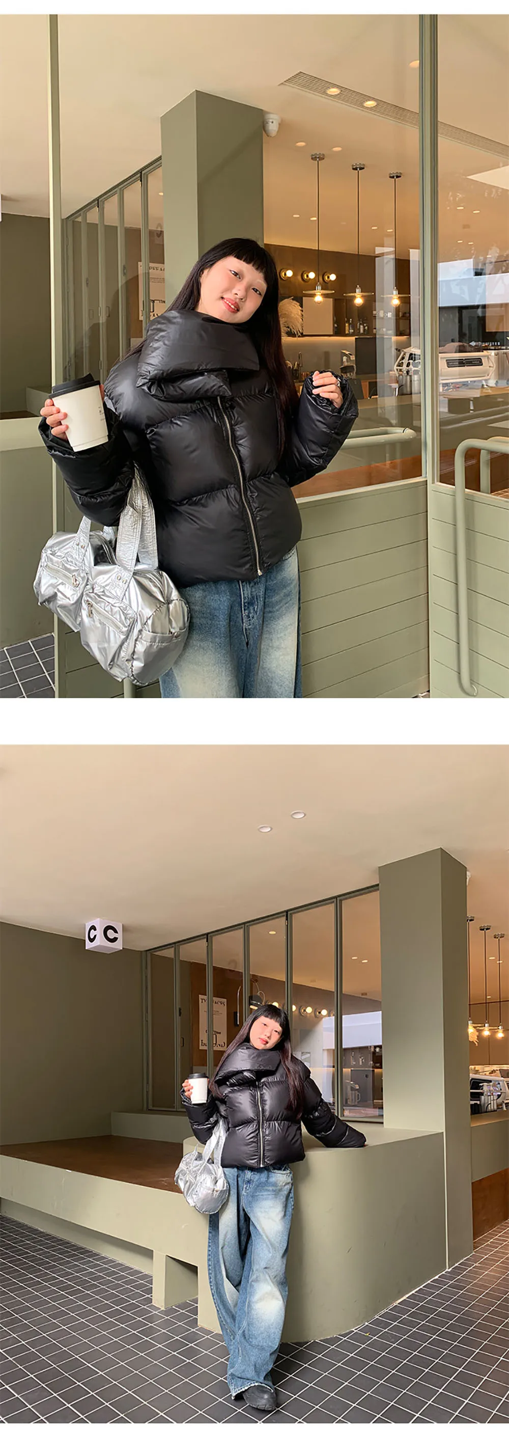 maoxiangshop - American High Street Stand Collar Thicken Warm Cotton-Padded Coat Women Winter New Solid Pop Simple Design Sense Short Coat