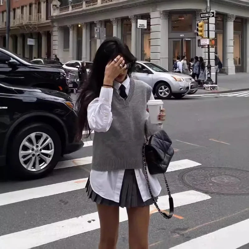 maoxiangshop - Autumn and Winter New Pullover Sweater College Style V-neck Layered Loose Sleeveless Knitted Vest Vest Women's Clothing