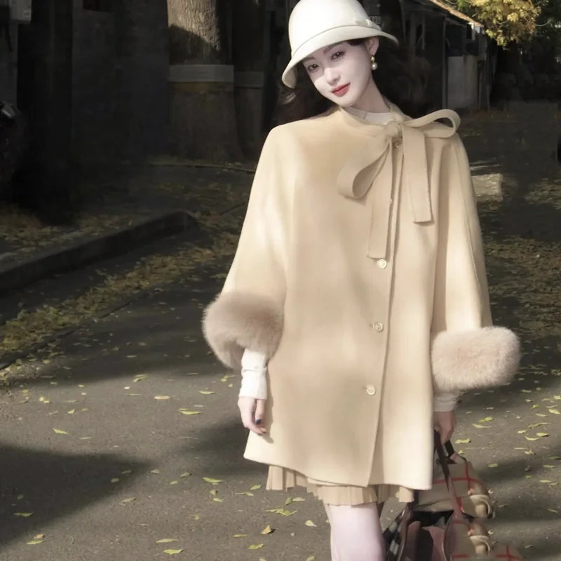 maoxiangshop - Autumn Elegant Woolen Coat Women Vintage Small Fragrance Long Sleeve Chic Jacket Fashion Ladies Loose Jacket Female Outerwears