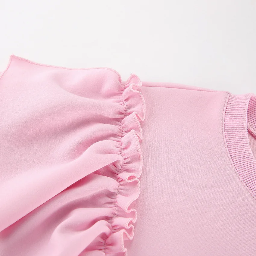 maoxiangshop - Autumn Knit Ruffled Pullover Women's Patchwork Fashion Loose Solid High Waist Knitwear Sweatshirts Female Elegant Hoodies