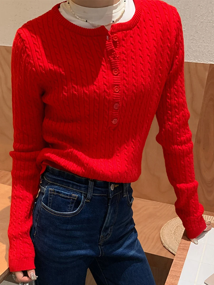 maoxiangshop - Autumn Solid Cardigan Sweater Women 2024 New O Neck Button Up Long Sleeve Slim Jumper Vintage Fashion Casual Knitted Outerwear