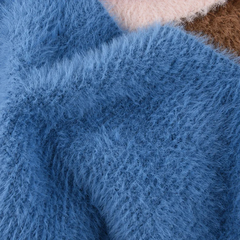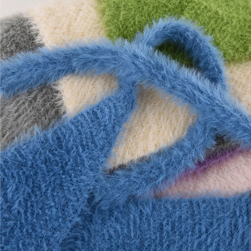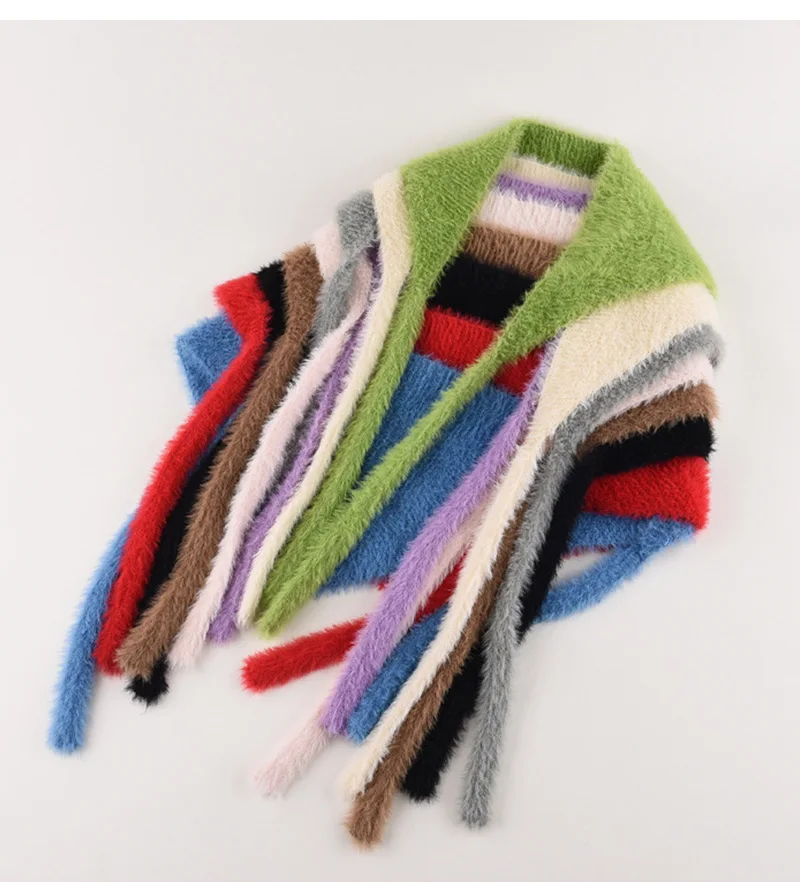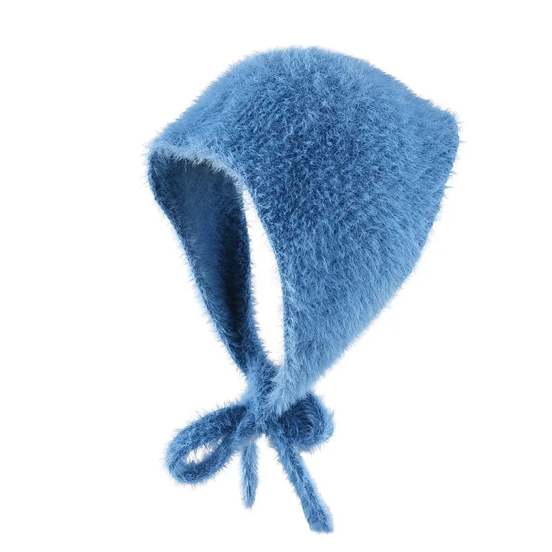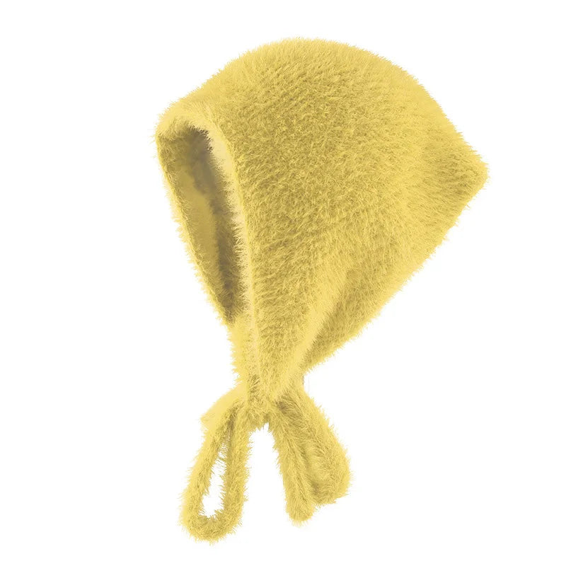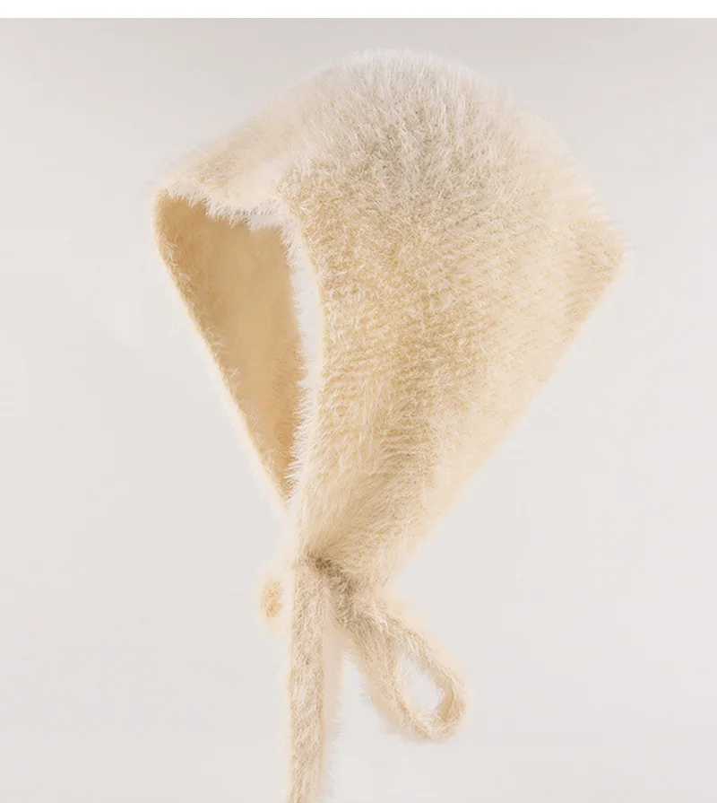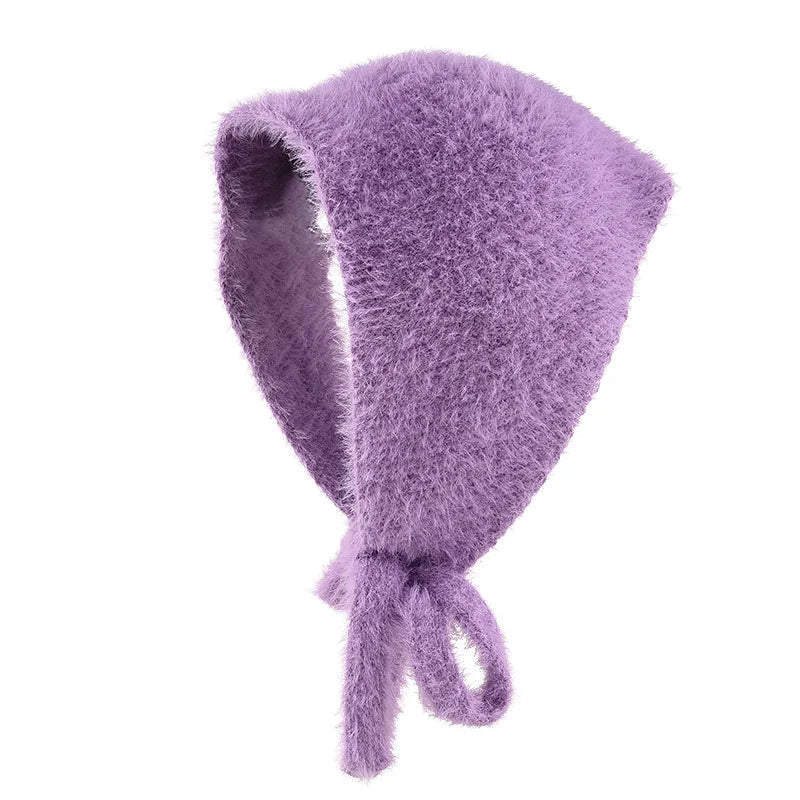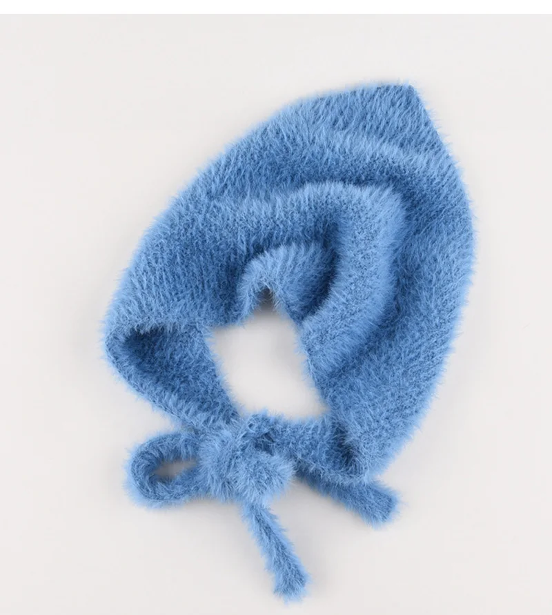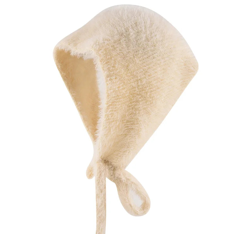 maoxiangshop - Autumn Winter Plush Triangle Scarf for Women Girls Sweet Warm Lace-Up Beanies French Fleece Knitted Bonnet Headscarf Accessories