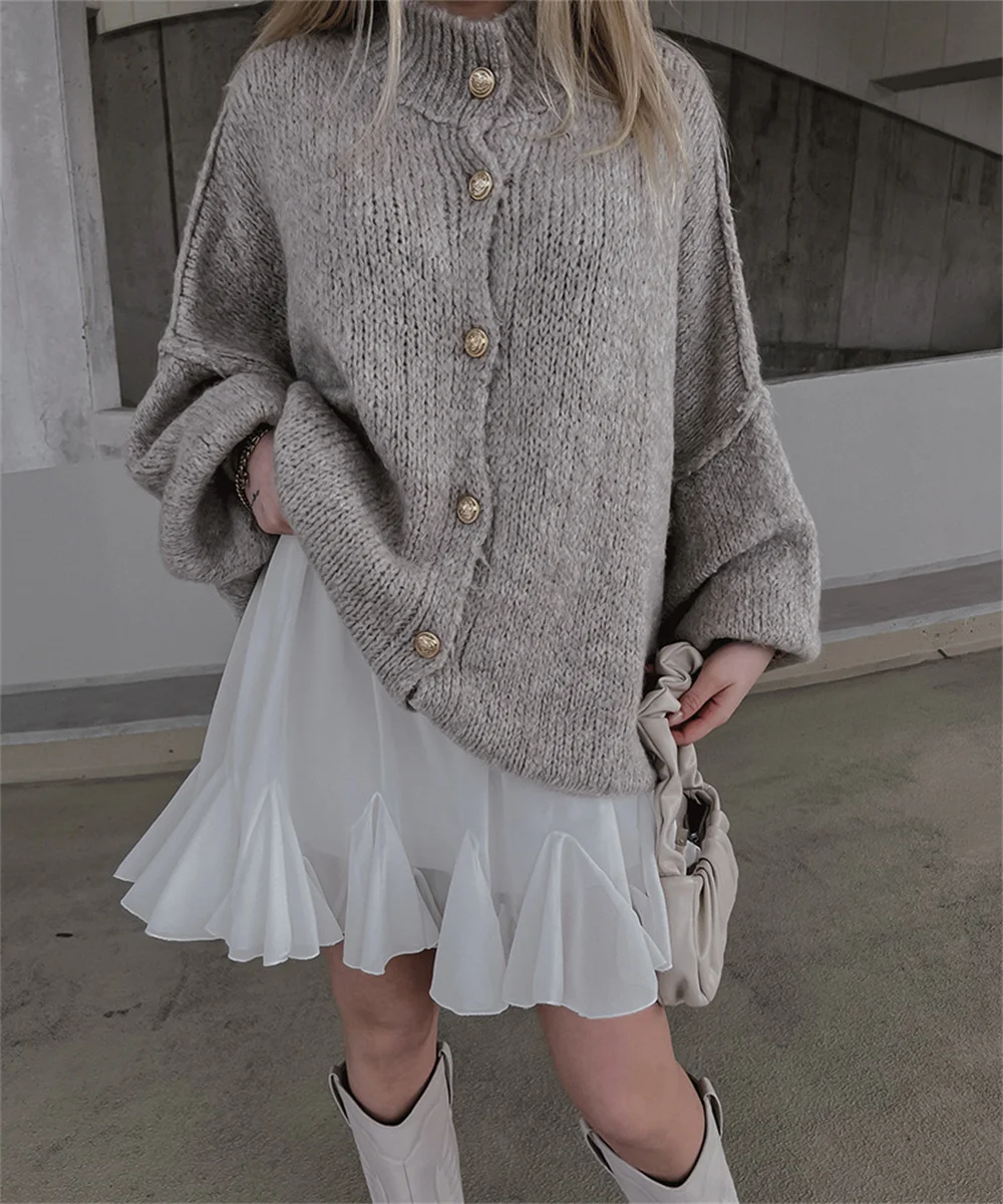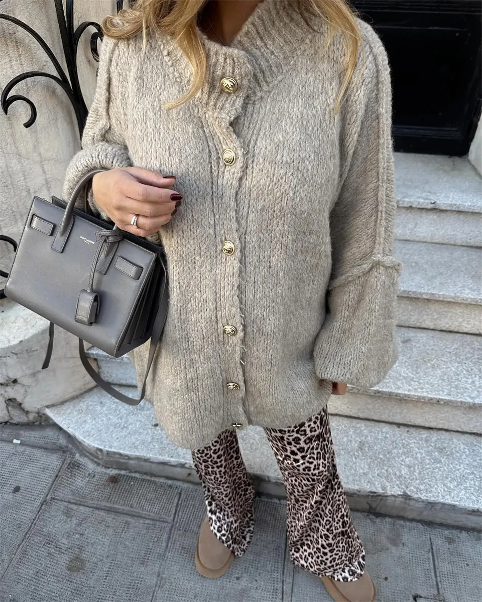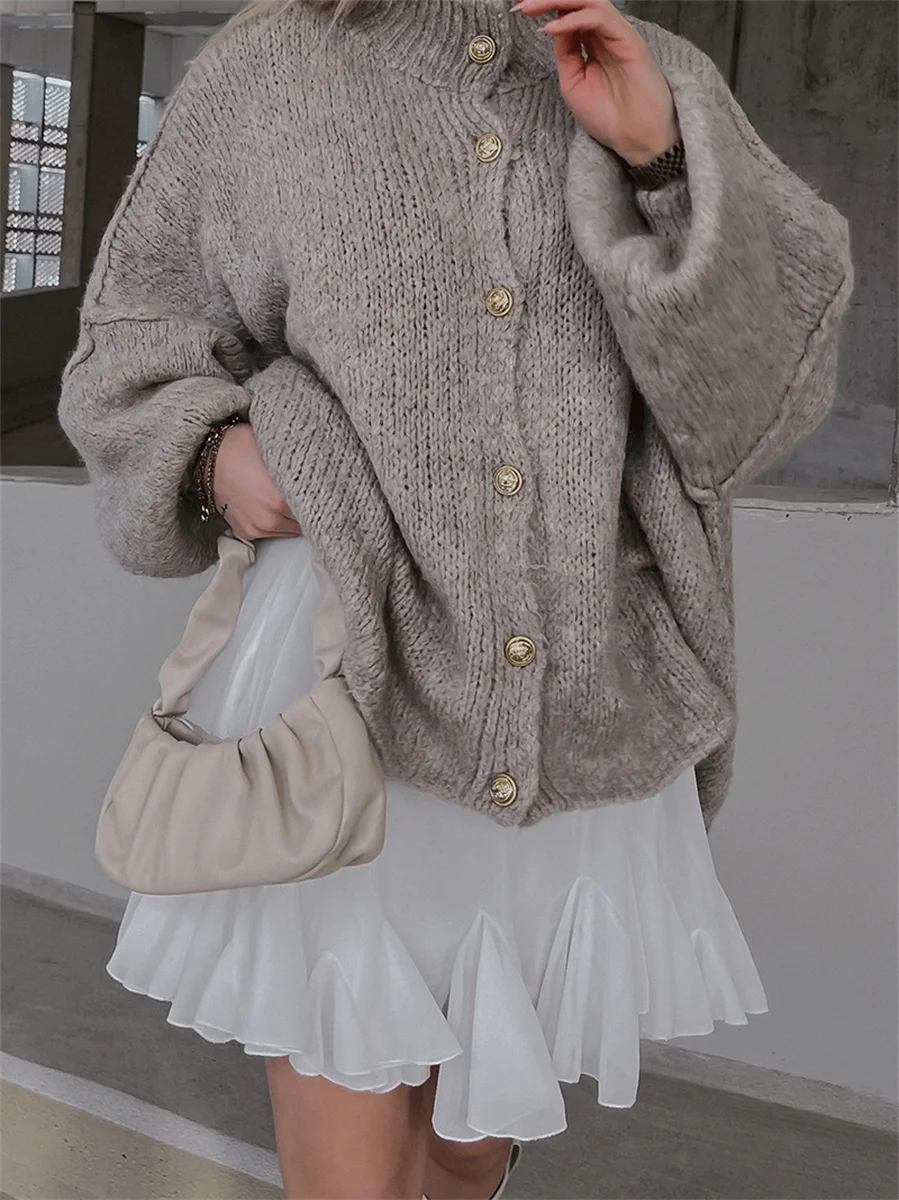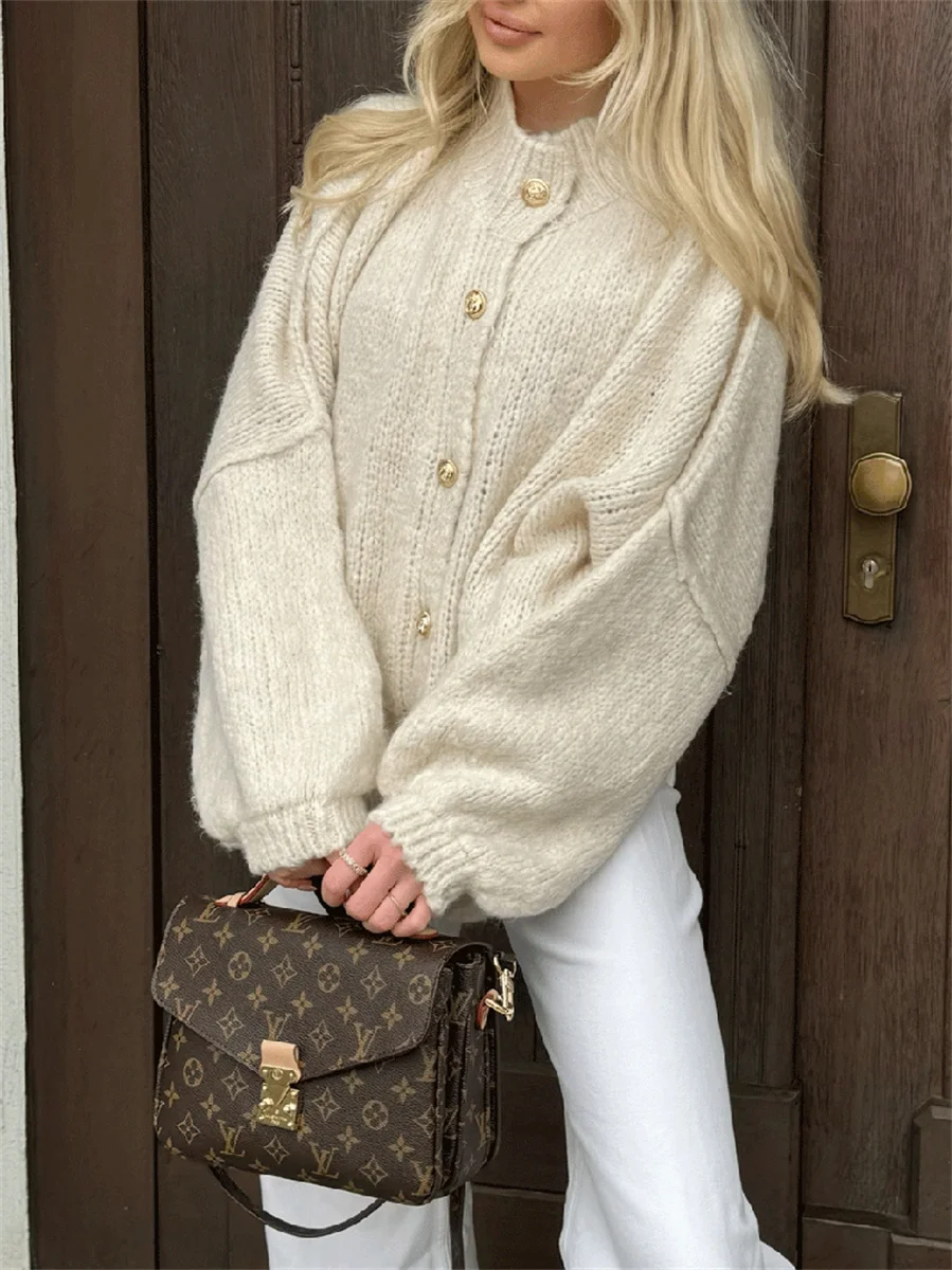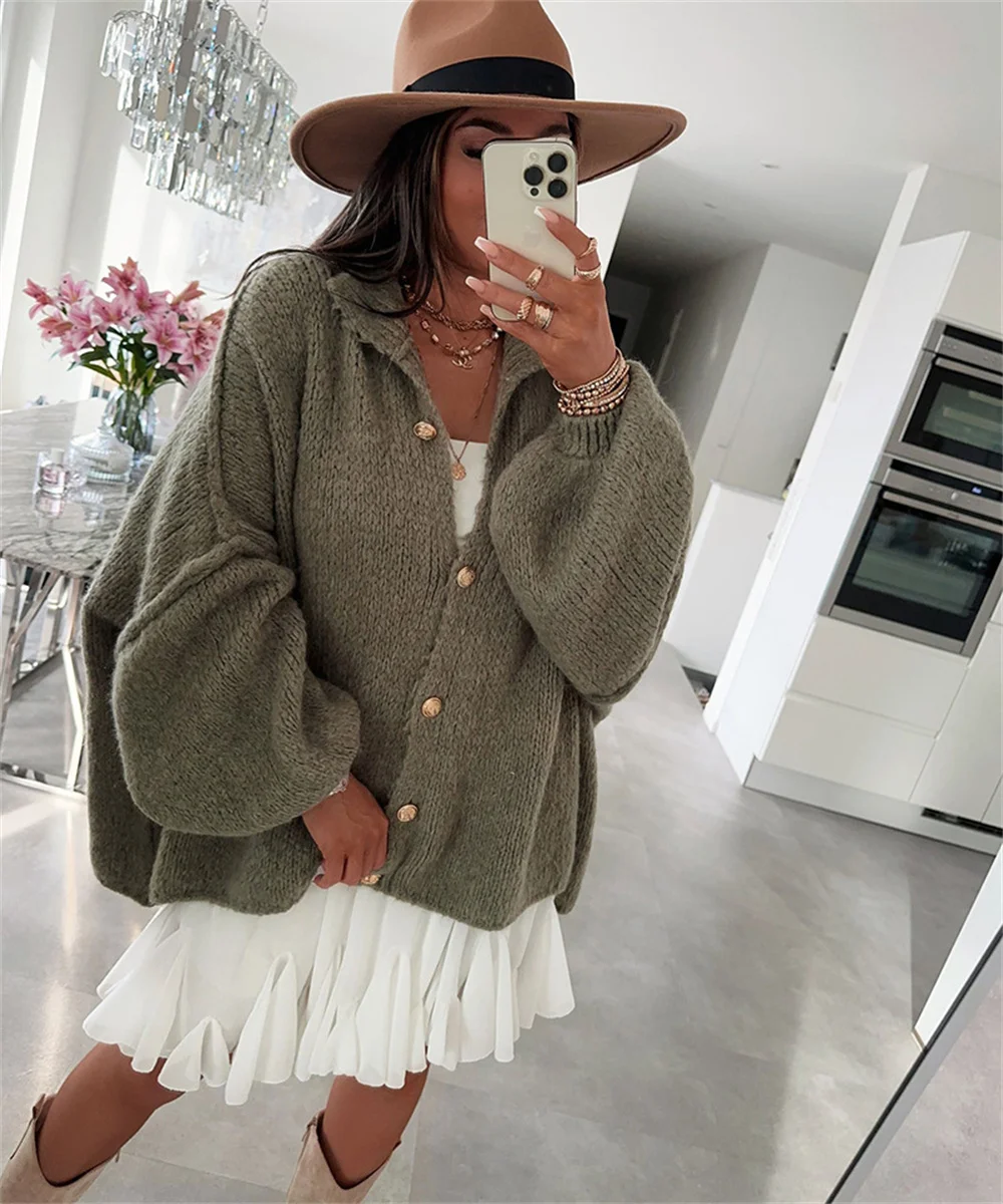 maoxiangshop - Casual Cardigan Women Sweater Loose Single Breasted O-neck Fashion Sweaters 2024 Autumn Office Female All-match Top Coat