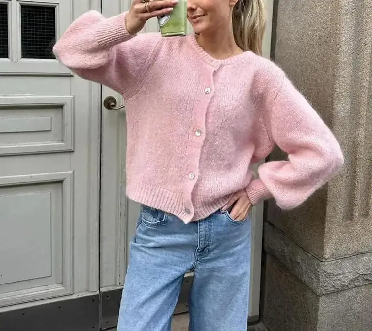 maoxiangshop - Casual Knitted Cardigan Women's Loose Versatile Solid Button Knitted Long Sleeve Sweater Autumn Office Warm Jacket Top