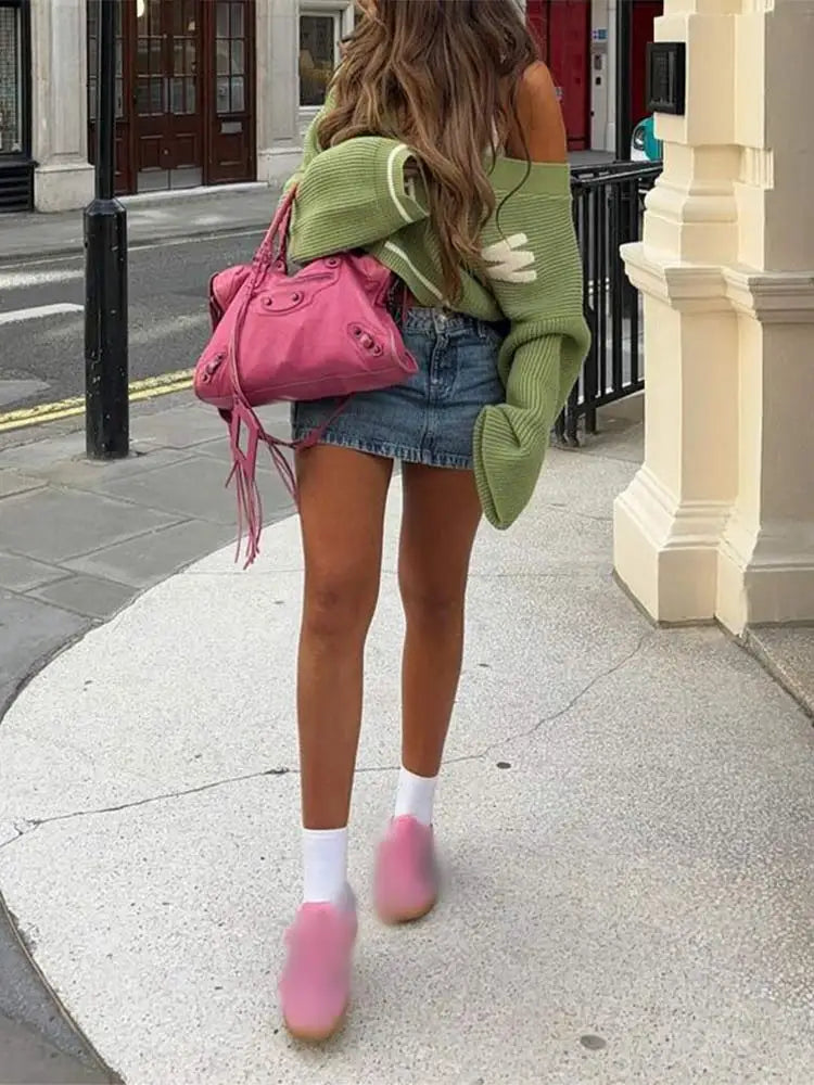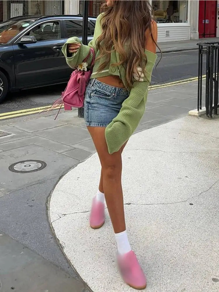maoxiangshop - Casual Letter Printed Knitted Cardigan Women V Neck Long Sleeve Single Breasted Sweater Autumn Female Loose Cropped Streetwear