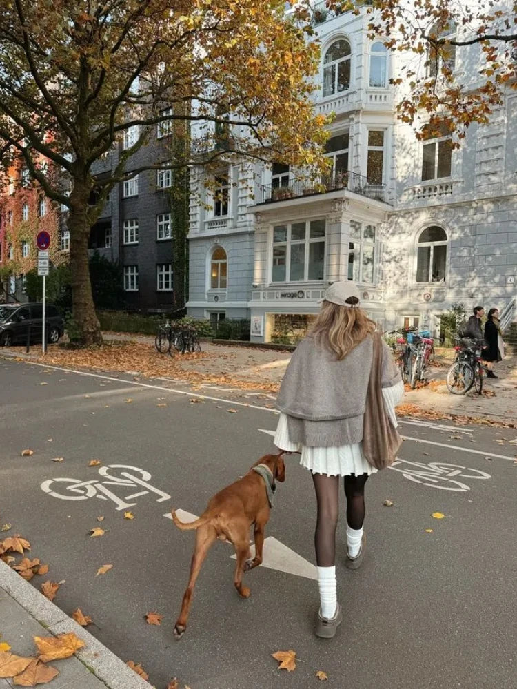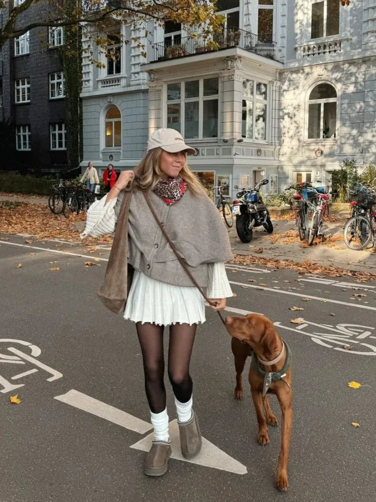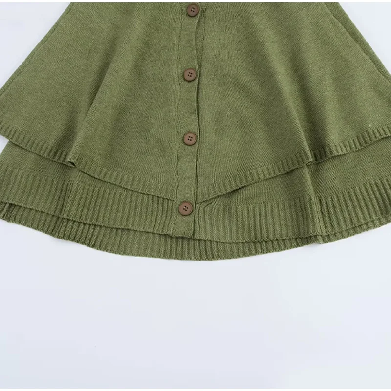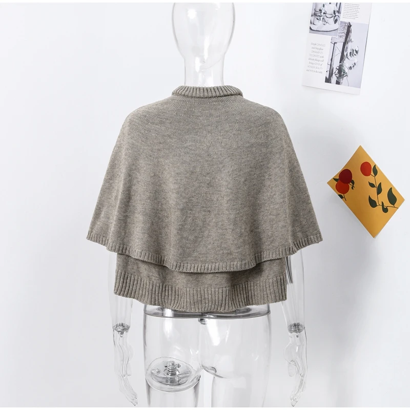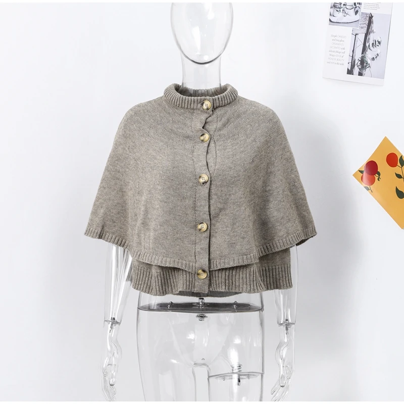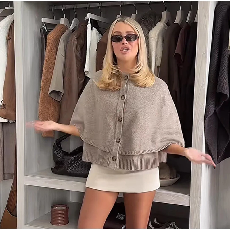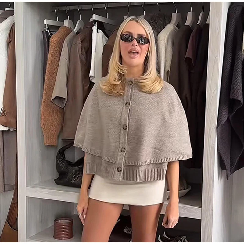 maoxiangshop - Chic Knitted Cape Cardigan Women Casual Solid Single-Breasted O-neck Sweaters Female Autumn Loose Versatile Simple Knitwear