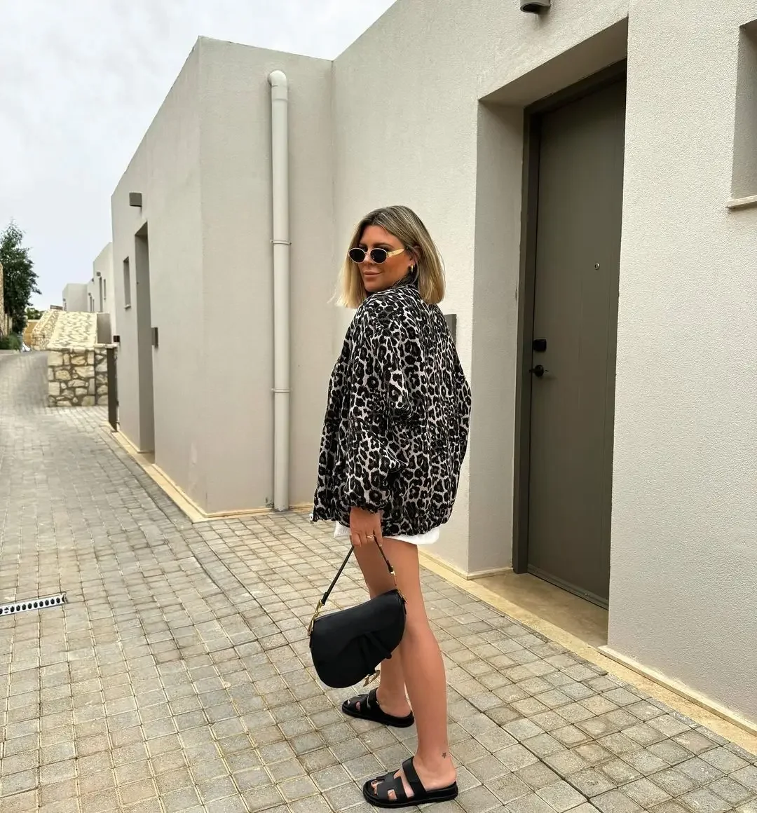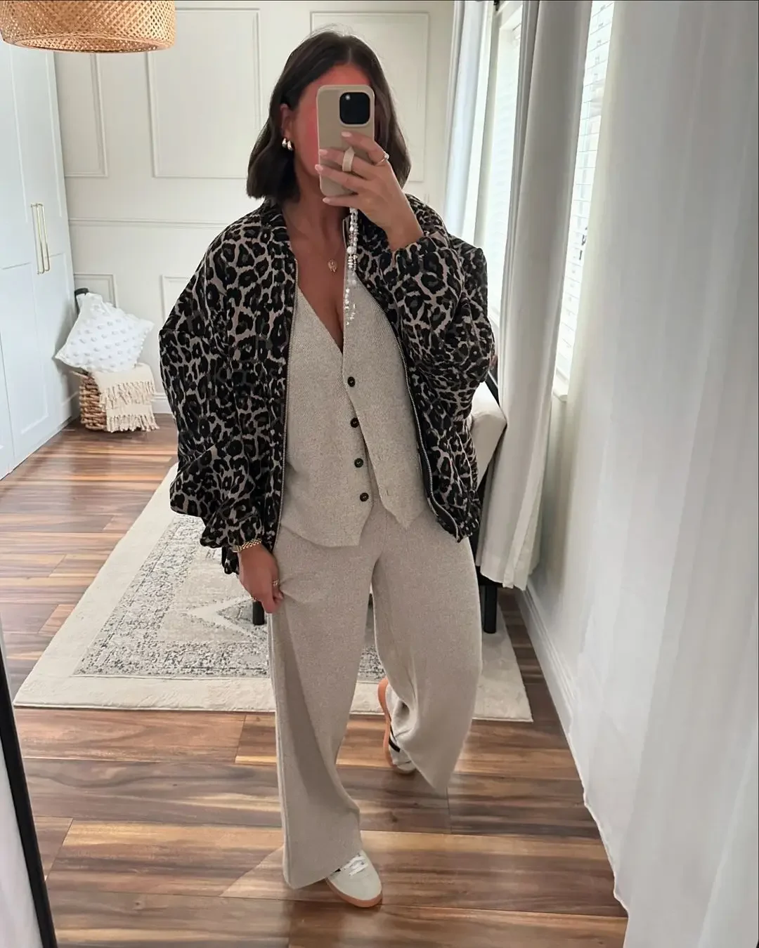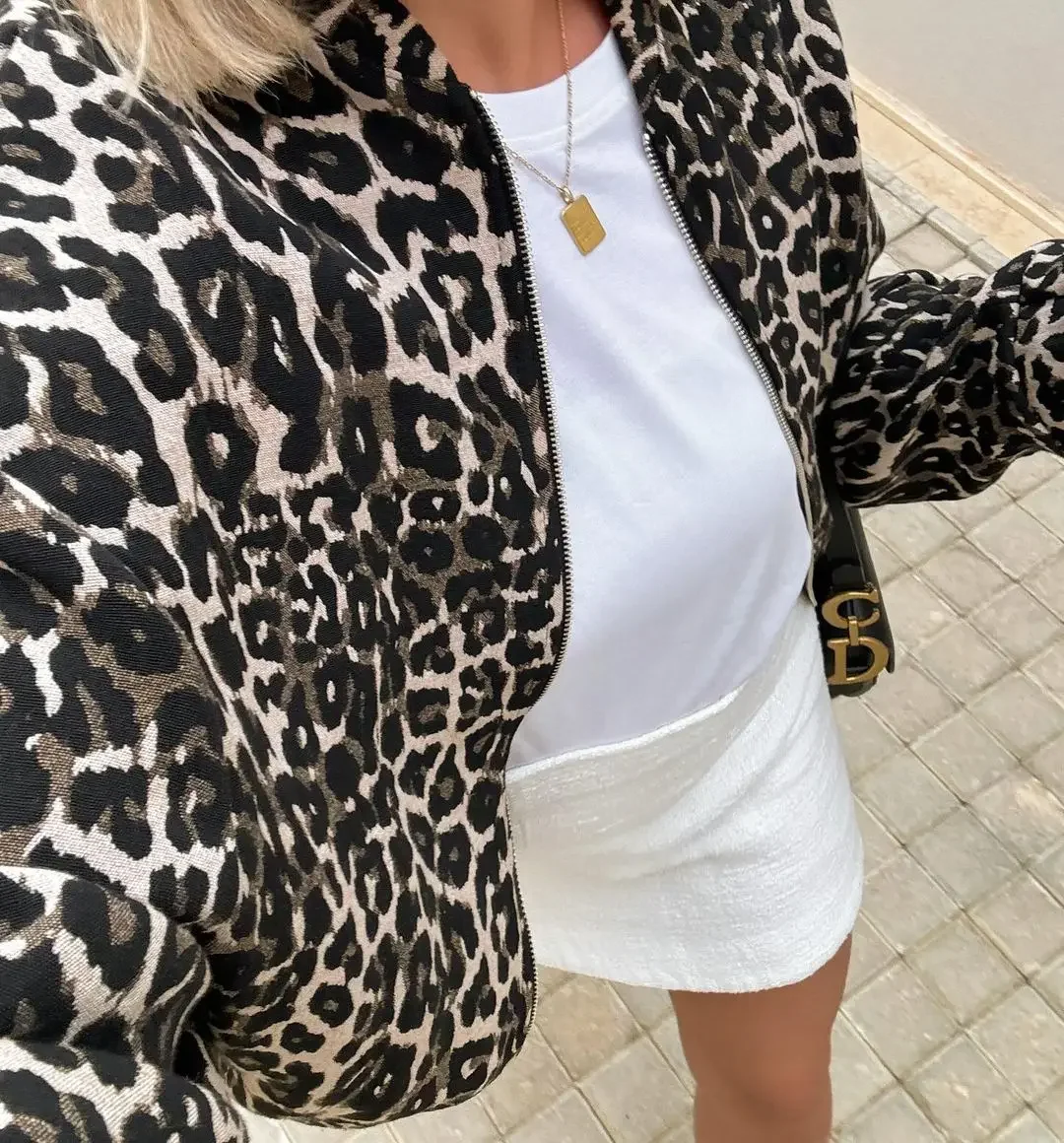 maoxiangshop  -  Chic Leopard Printed Pattern Lamb Wool Coat 2024 Autumn Winter Fashion Warm Outerwear Female New O Neck Zipper Loose Jackets