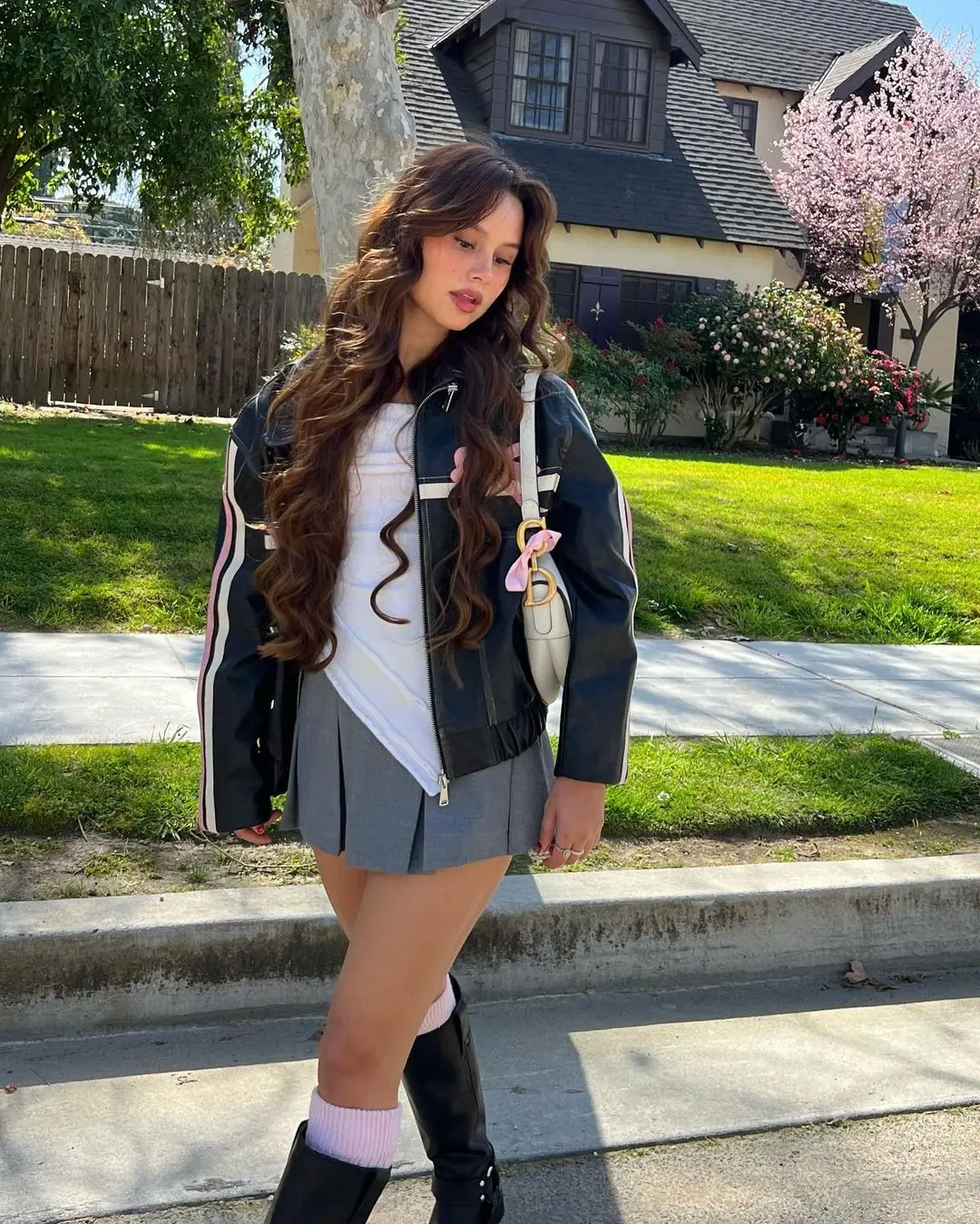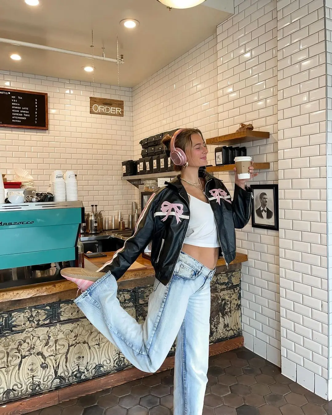maoxiangshop - Chic Pink Bow Pu Leather Y2k Jacket Women Autumn Vintage Warm Long Sleeve Coat Zipper Coat Lady High Street Midnight Outerwear