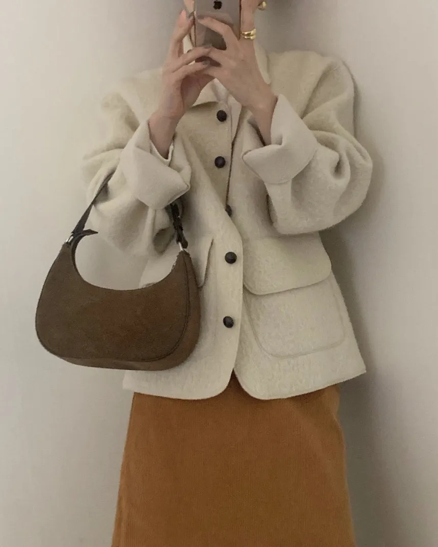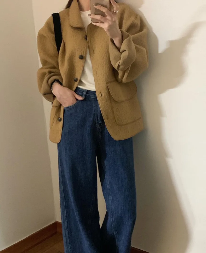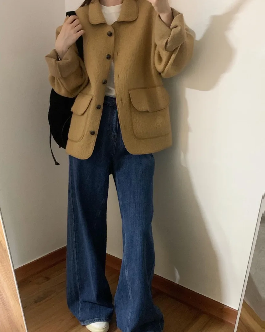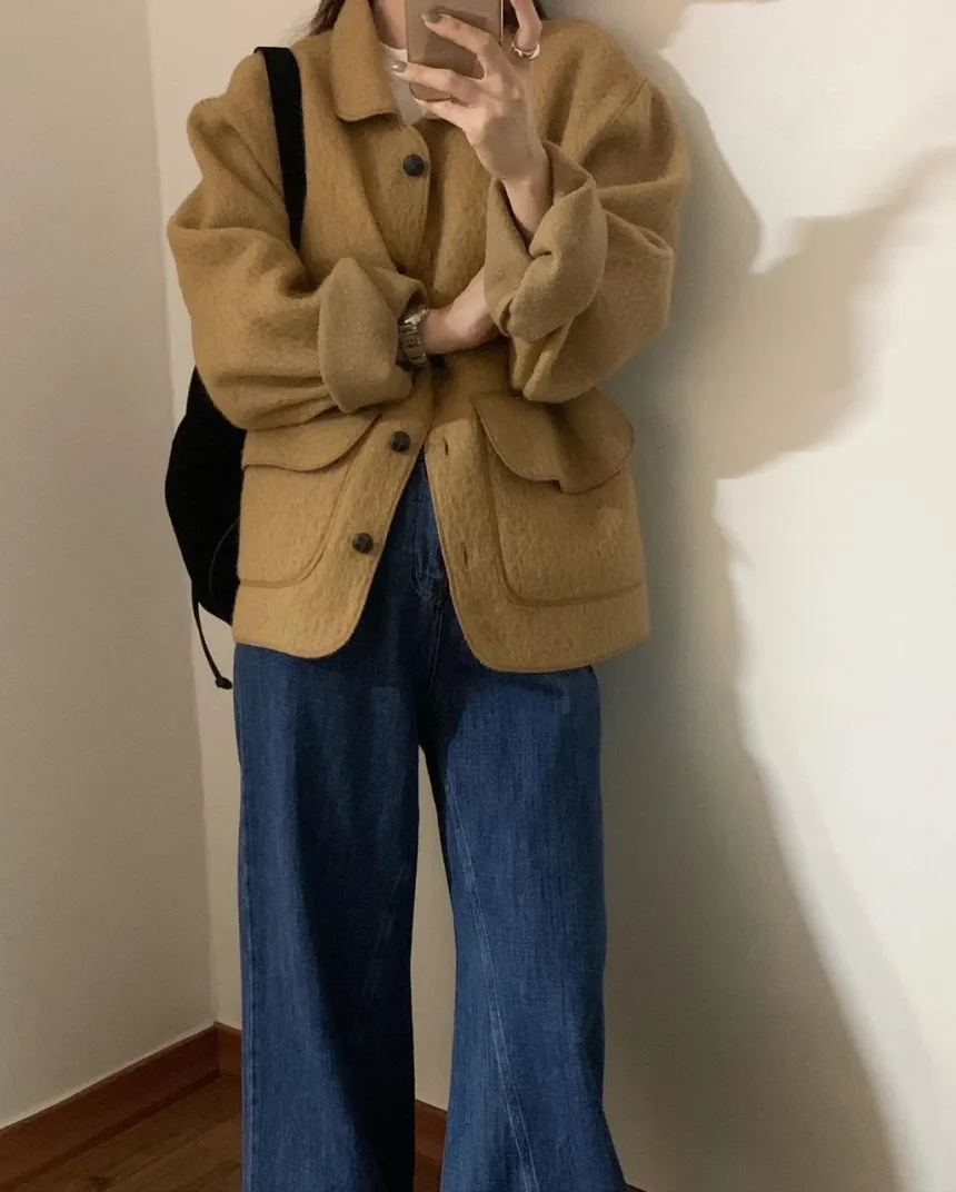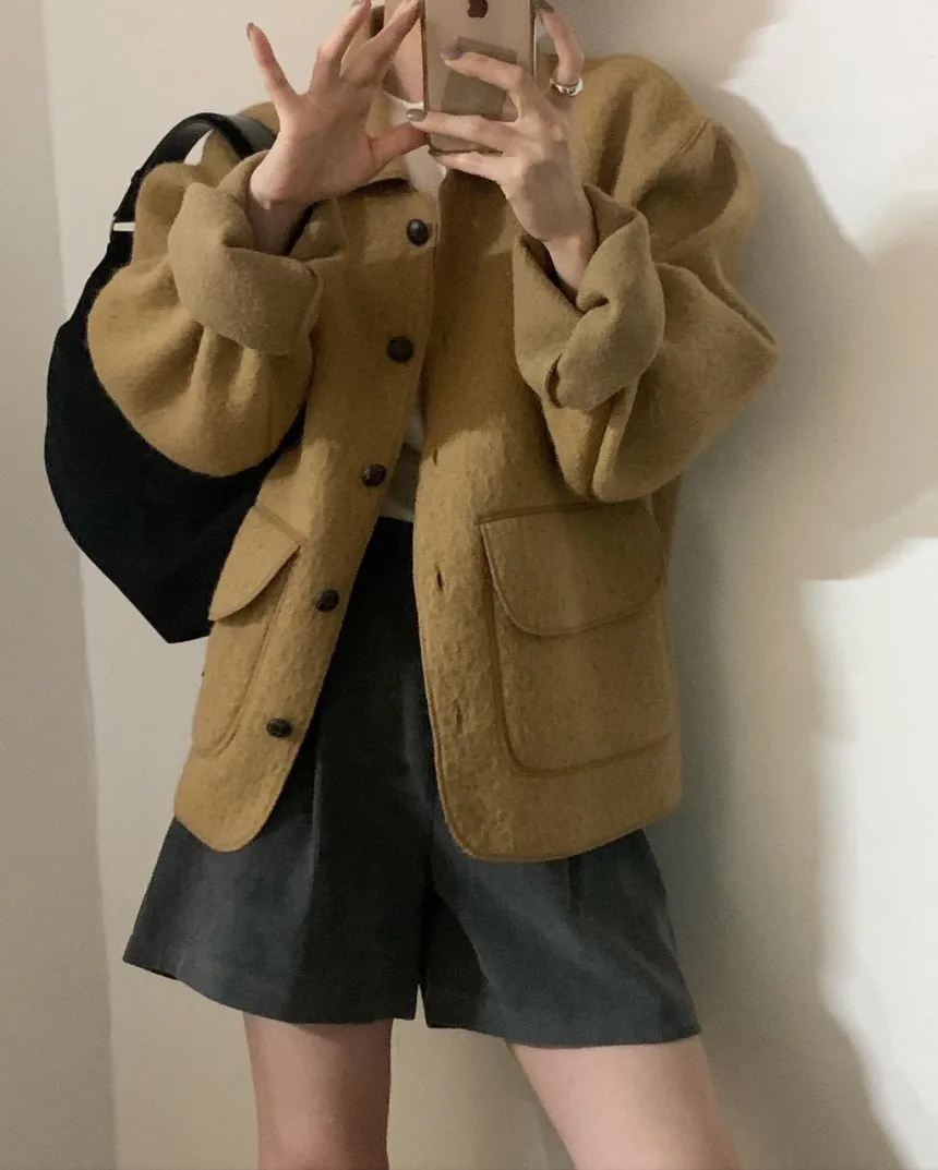 maoxiangshop - Chic Solid Woolen Jackets Loose Women New Warm 2025 Vintage Slim Winter Streetwear Elegant Fashion Daily Coats