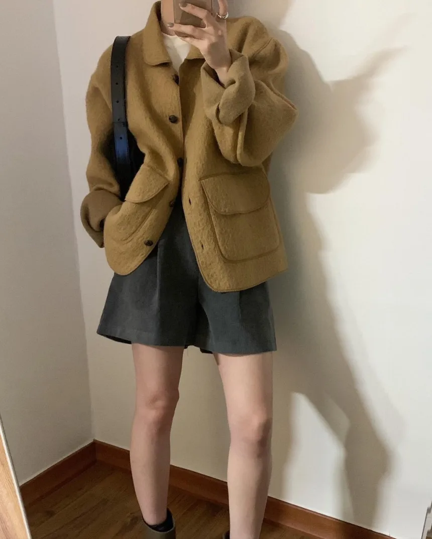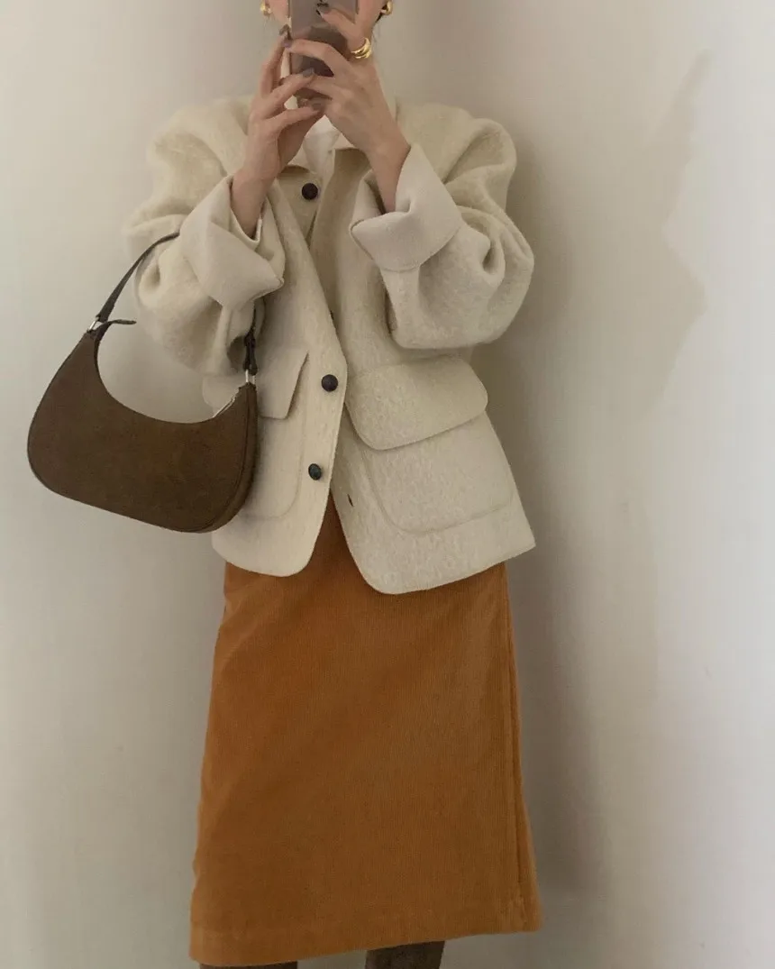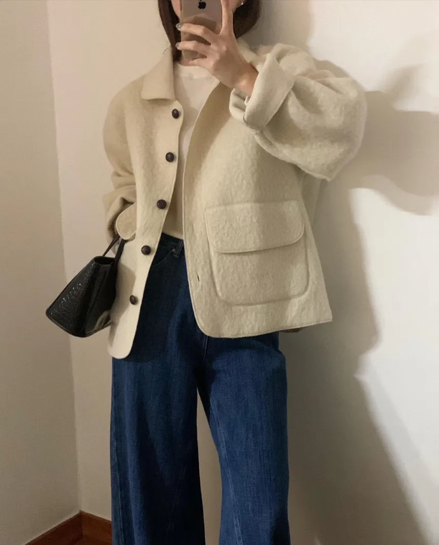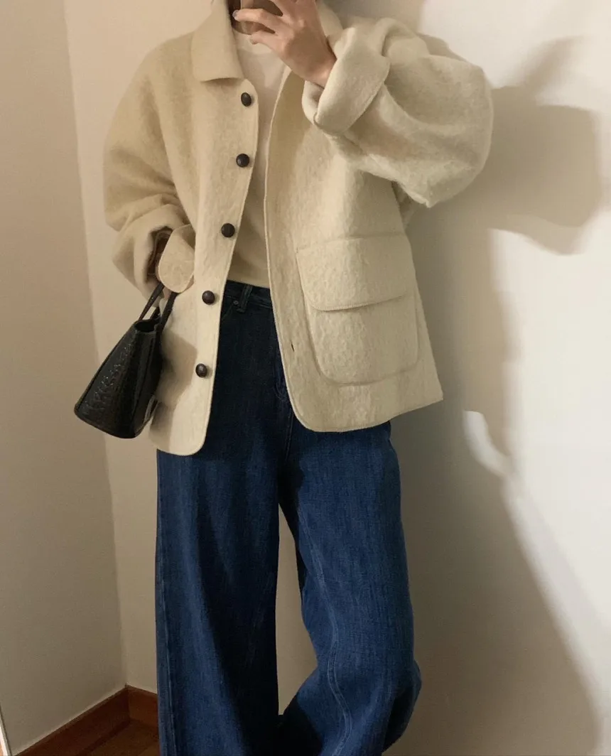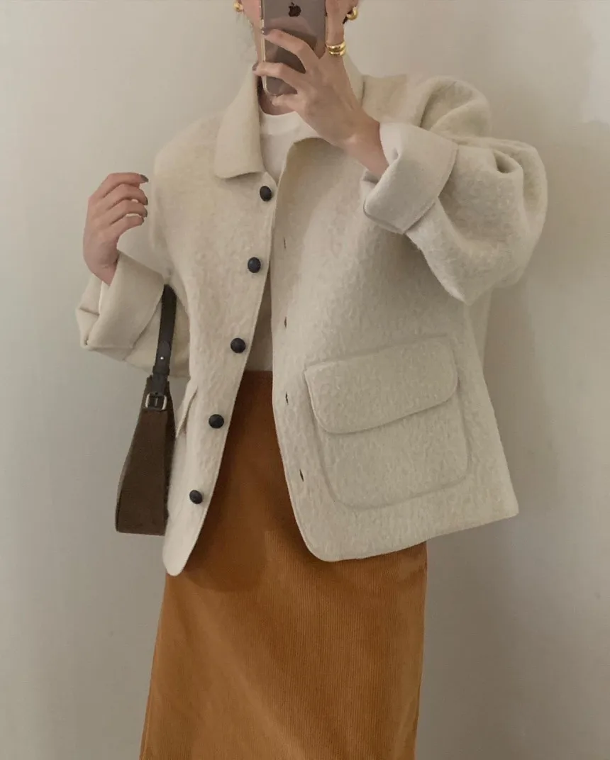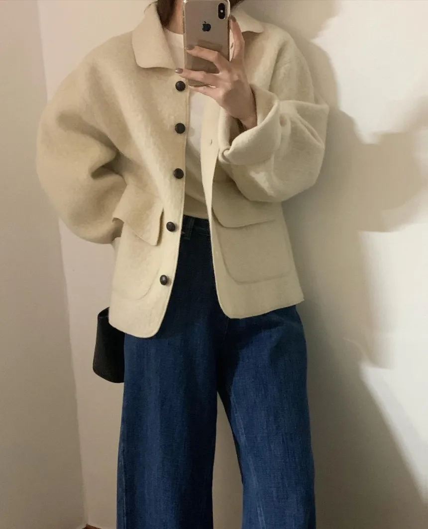 maoxiangshop - Chic Solid Woolen Jackets Loose Women New Warm 2025 Vintage Slim Winter Streetwear Elegant Fashion Daily Coats